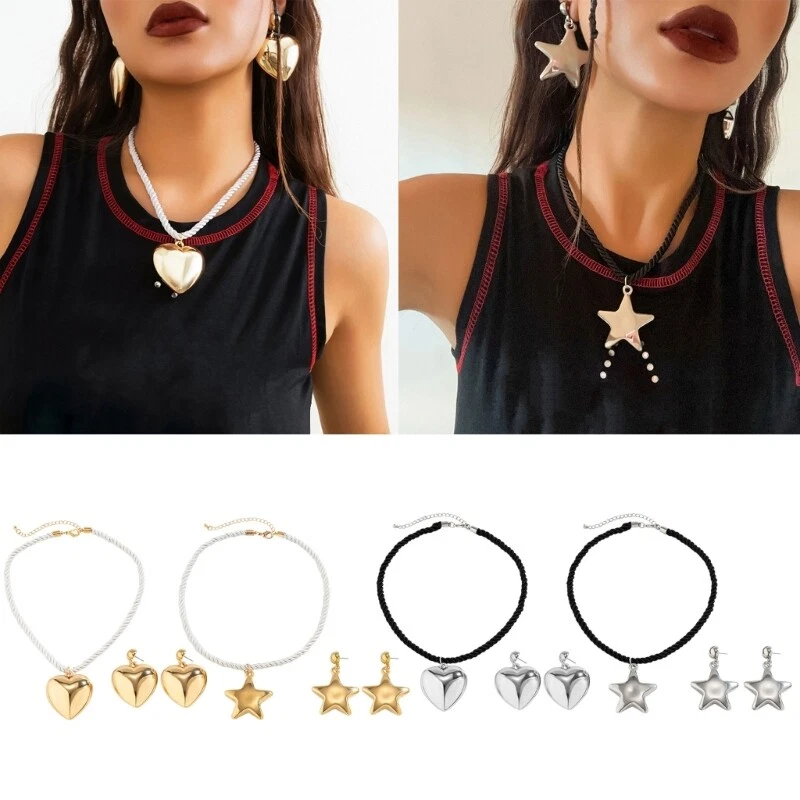 Features: These necklace and earring set will make you more and eye-catching. Easy to pair with scarves, hats, bags or everyday clothes. The unique jewelry will definitely attract the attention of others. Exquisite accessories help add fun to your favorite clothes accessories. Occasion: Weddings, banquets, gifts, daily life, dance parties, dance parties, Specifications: Alloy Size:Approx.40+7cm/15.74+2.75" Star Pendant:Approx.4.5cm/1.77" Package Includes: 1 Piece Heart Necklace 1Pair of Earrings note: Please allow 1-2cm errors due to manual measurement,Please make sure that you do not mind before you order. Due to the difference between different monitors, the picture may not reflect the actual color of the item.