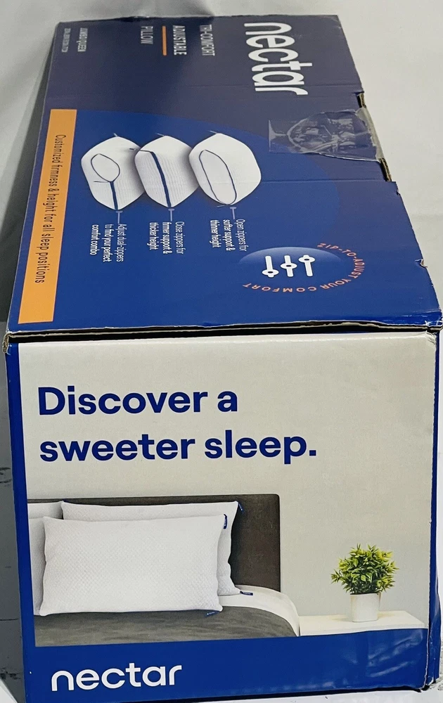 Nectar Tri-Comfort Adjustable Pillow, Cooling, Memory Foam, Jumbo/Queen,. NEW -OPEN BOX - CUSTOMER RETURN/UNSOLD INVENTORY FROM COSTCO - FREE SHIPPING Elevate your bedroom experience with the Nectar Tri-Comfort Adjustable Pillow. Crafted with premium memory foam "micro pillows" and microfiber blend, this jumbo/queen sized pillow provides hypoallergenic comfort and cooling. The adjustable height and firmness options make it suitable for all sleep positions and the soft-medium-firm support ensures a luxurious feel. The traditional style and geometric pattern of this foam pillow make it a perfect fit for any bedroom decor. It is machine washable and comes with a zip closure for easy removal. This Nectar Sleep product is ideal for teens, adults, unisex baby & toddler, and kids who deserve a comfortable and stylish sleep experience.