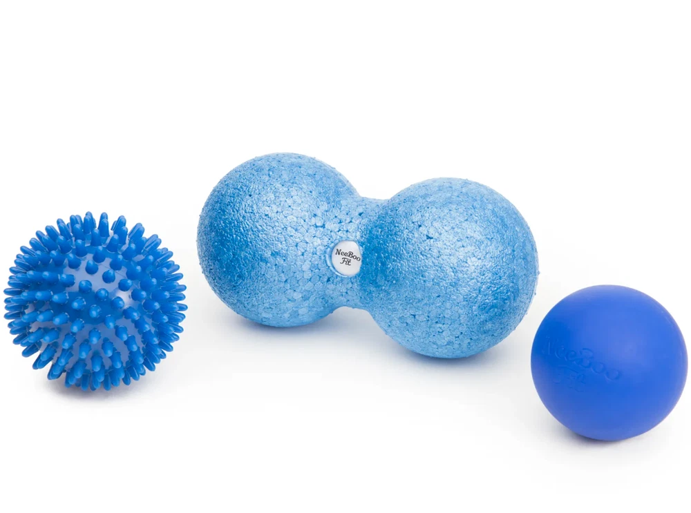 NeeBoo Fit 3 Piece Massage Kit with Carry Bag - New/Unopened What’s in the bag? Double Foam Roller Peanut Ball – 16cm x 8cm. Same material (EPP) as a Foam roller, but shaped like a peanut Spiky Ball – 8cm diameter. PVC material with gentle spikes to allow more give and cushion “Lacrosse” Style Ball – 6.4cm diameter. Looks like a lacrosse ball, but made with silicone for similar density but more comfortable use High Quality Pull-String Carry Bag so you can take them anywhere Exercises and resources are provided online with detailed self-massage videos so we can keep you up to date