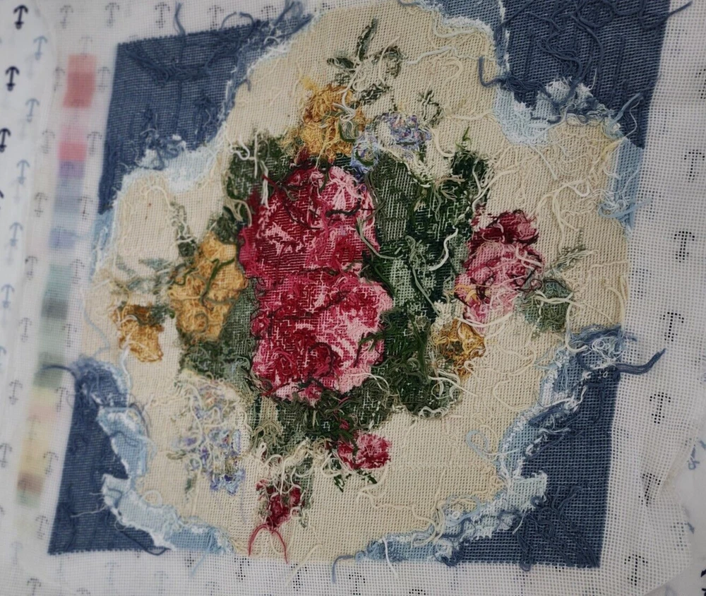 Needlepoint Floral Multi Color Roses Handmade Chair Seat Cover or Pillow