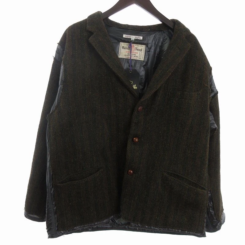Needles Tag Herringbone Jacket Long Sleeve Harris Tweed Wool Lq295 Brown M Men'S
