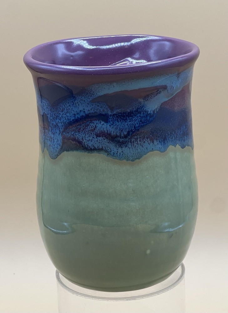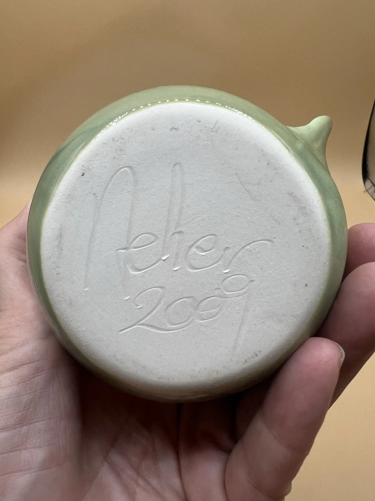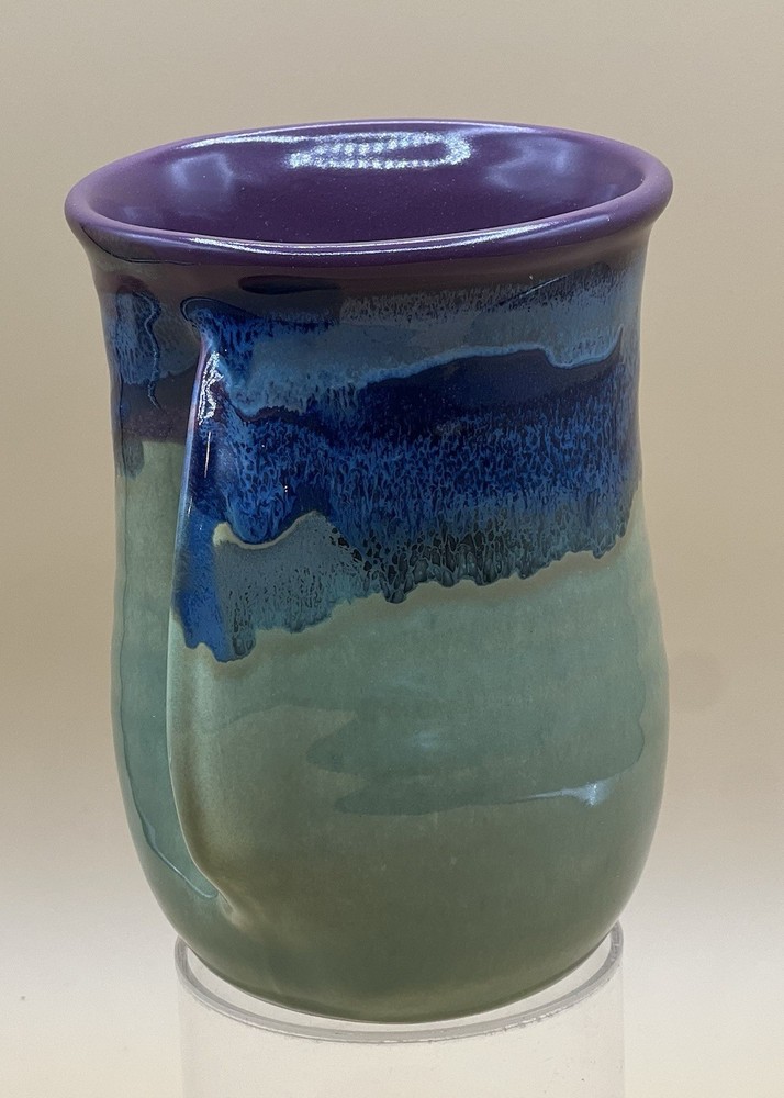 The Neher Hand Warmer Clay In Motion Right Handed Ceramic Coffee Mug 2009 Signed is a unique and handmade coffee mug crafted from clay and ceramic, featuring a round shape with a capacity of 14oz. This mid-century modern mug is suitable for hot beverages and showcases a glossy finish with a multicolor pattern. Made in North Carolina in 2007, this original piece of art pottery bears the signature of the artist, making it a special addition to any collection of decorative cookware or dinnerware. Hand wash only to preserve its beauty for years to come.