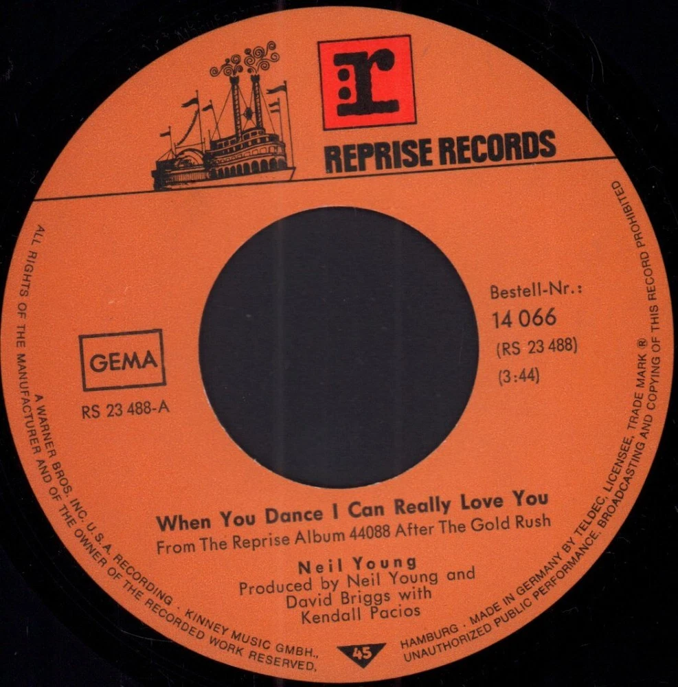 GRADING Our Grading System The table below is an overview of how our grading system works. The first grade is for the sleeve and second grade is for the media/disc, e.g. VG+/EX means that the item's sleeve is in Very Good Plus condition and the media/disc is in Excellent condition. If there is only one condition, e.g. /EX, it means that the item is not in a picture sleeve and that the media/disc is in excellent condition. Records that aren't in picture sleeves will either be in a company sleeve or a generic plain sleeve. If you have any questions, please get in touch. Condition Sleeve Media MINT (10/10) Mint, perfect Mint, perfect EX+ (9/10) Excellent plus, near mint Excellent plus, near perfect EX (8/10) Excellent, well looked after, clean, only slight signs of use Excellent, well looked after, clean, only slight signs of use EX- (7/10) Excellent minus, light wear and signs of use Excellent minus, light wear and signs of use VG+ (6/10) Very good plus, some moderate wear Very good plus, some scuffs, no deep marks VG (5/10) Very good, well used and worn Very good, well used and marked VG- (4/10) Very good minus, very worn Very good minus, very worn and marked GOOD (3/10) Good, some major wear Good, some major wear and scuffing FAIR (2/10) Fair, major wear Fair, major wear and scuffing POOR (1/10) Poor, severe wear Poor, severe wear and scuffing DELIVERY Combined Postage If you add all the items you wish to purchase from us to your shopping basket/cart, and then go to the checkout page from the shopping basket page, the shipping cost will be automatically combined. Packaging All of our items are parcelled using strong specially designed packaging, each vinyl in an order is placed in a clear plastic sleeve and plain paper white sleeve, and is separated from its cover (unless it is advertised as sealed), to prevent any damage during transit. If an item is sealed, and you would prefer the vinyl to be placed outside of its sleeve before dispatch, please let us know. Prices You can see all delivery options and prices for an item on the "Postage and payments" tab. Tracked delivery If you wish to have a tracking number with your order, please select the "Signed" or "Express" delivery option, "Standard" delivery does not include a tracking number. SHOP Click here to view our Ebay shop, with over 200,000 items in stock FAQ Does a used item include the original inner sleeve/insert/poster etc.? We will always include in the description if a used item includes any additional parts, e.g. "with inner" or "includes poster", if you know an item originally came with any additional parts, such as a printed inner sleeve, and it isn't mentioned in the description, then generally the used item won't include it, but please feel free to ask. New items will always be complete, unless otherwise specified. CATEGORIES Shop Home 10" Vinyl Records 12" Vinyl Records 7" Vinyl Records Cassettes (Tape) CDs (Compact Discs) LP Vinyl Records Music Memorabilia Other Artist Neil Young Title When You Dance I Can Really Love You Format 7 Inch Vinyl Country Germany Label Reprise Catalogue Number 14066 Year 1971 Description pic sleeve Condition (Sleeve/Disc) EX-/EX Track List A. When You Dance I Can Really Love You (3:44) B. After The Gold Rush (3:45) DELIVERY INFORMATION If you wish to have a tracking number with your order, please choose the Signed or Express delivery option, the Standard delivery option does not include a tracking number. Please note, the Express option for delivery outside of the UK includes a tracking number, but has the same delivery time as the Standard option. WE HAVE MORE NEIL YOUNG ITEMS IN STOCK We have more items in stock by this artist, click here to see them. ABOUT US Vinyl Tap has been in the business of selling music for over 30 years, and in that period we have supplied many thousands of collectors and music fans around the globe with vinyl, CDs and music memorabilia. You can check out the over 200,000 items that we have in stock on our Ebay shop, here . Artist: Neil Young - Title: When You Dance I Can Really Love You - Format: 7 Inch Vinyl - Country: Germany - Label: Reprise - Catalogue Number: 14066 - Year: 1971 - Description: pic sleeve