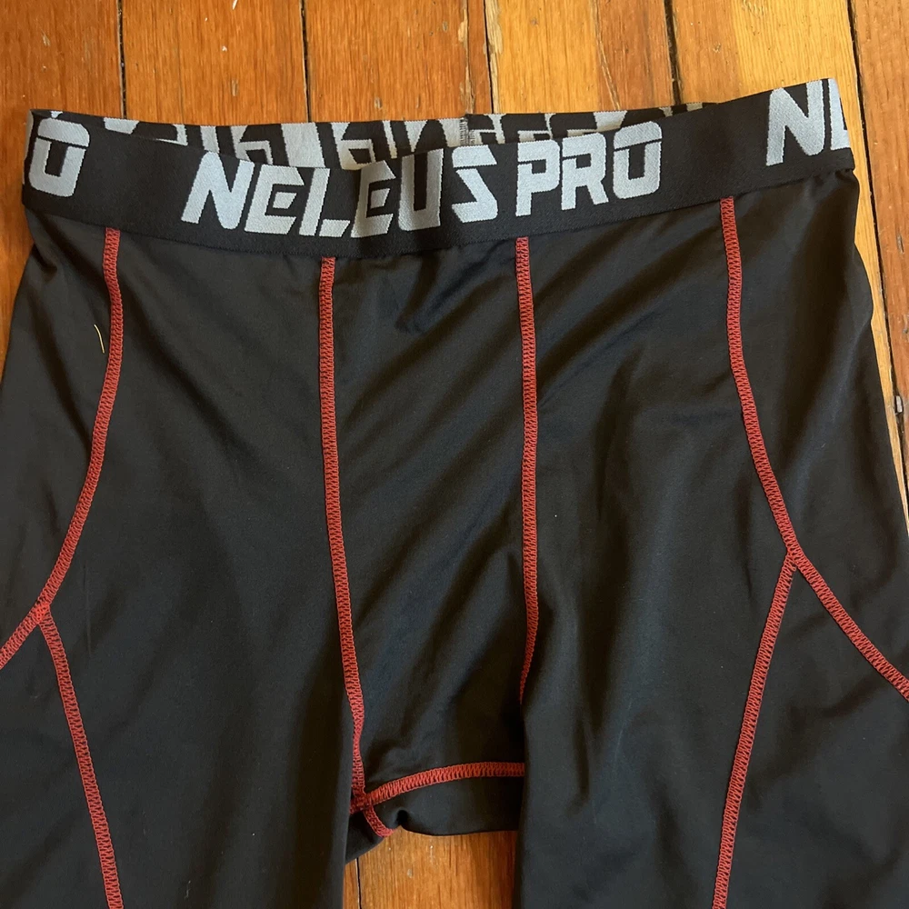 Elevate your activewear game with these Neleus Pro Sportswear Compression Pants. Designed for men in size L, these black pants with red stitching are perfect for gym and training as well as running and jogging. The pull-on closure and machine washable garment care make them convenient for everyday these pants feature a compression area on the waist and legs for a flattering fit. The athletic style and sports theme make them a versatile addition to any wardrobe. These pants are perfect for all seasons, whether it be winter, summer, or spring. Get your hands on these Neleus Pro Sportswear Compression Pants and experience the ultimate comfort and style.