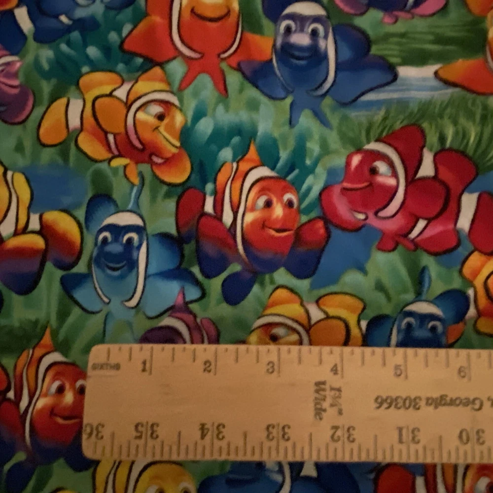 Pattern: Nemo Dory Fish Theme: Fish Length/Amount: 1 Yd + 22” With Tail gtin13: Does not apply Brand: Timeless Treasures UPC: Does not apply Suitable For: Quilting, Crafts, Sewing Fiber Content: Cotton Color: Multicolor Material: Cotton