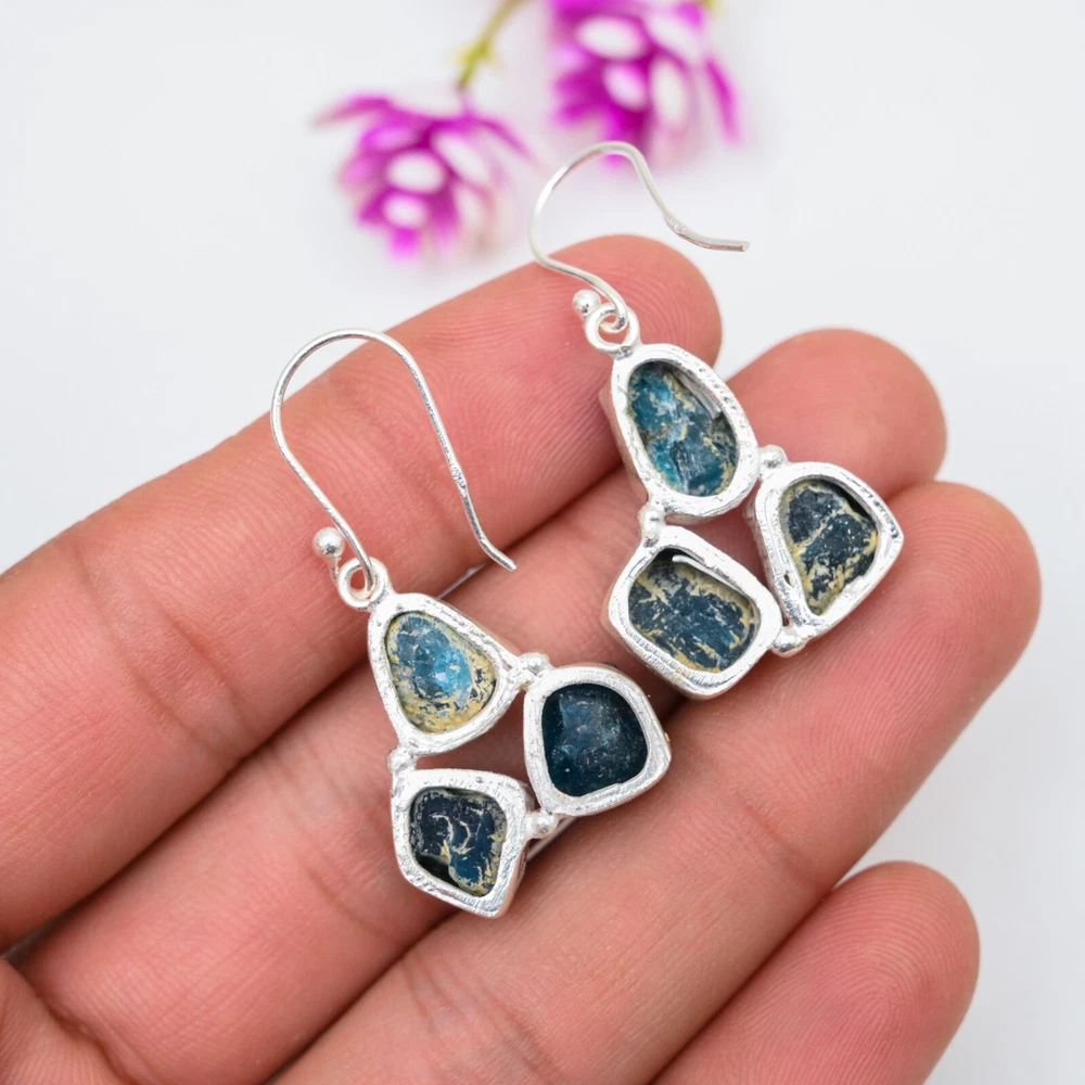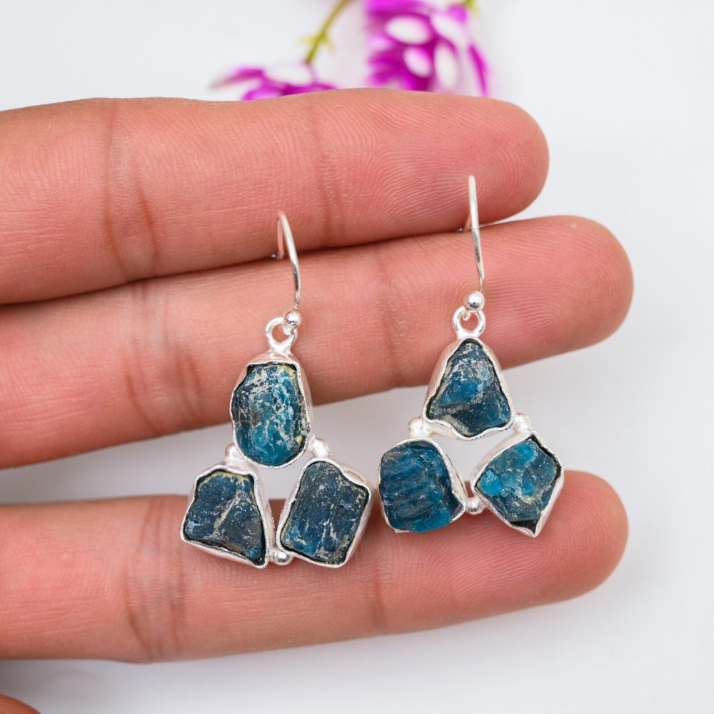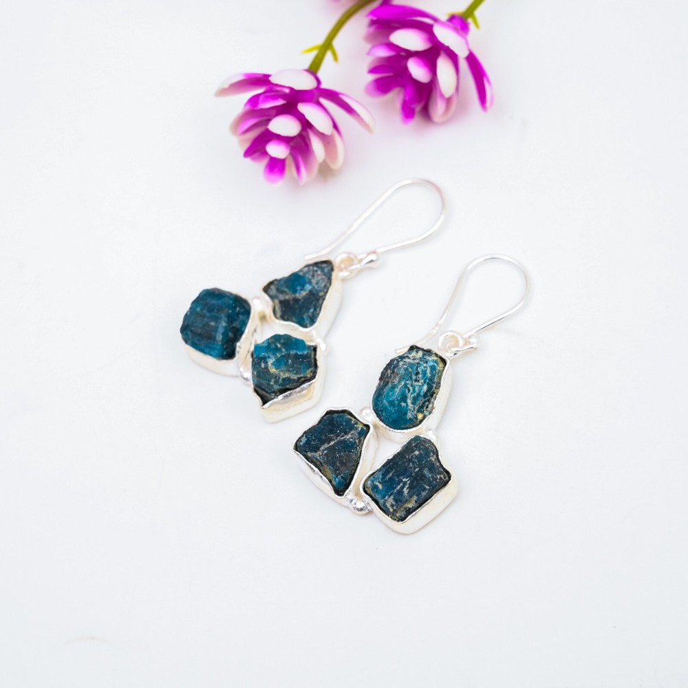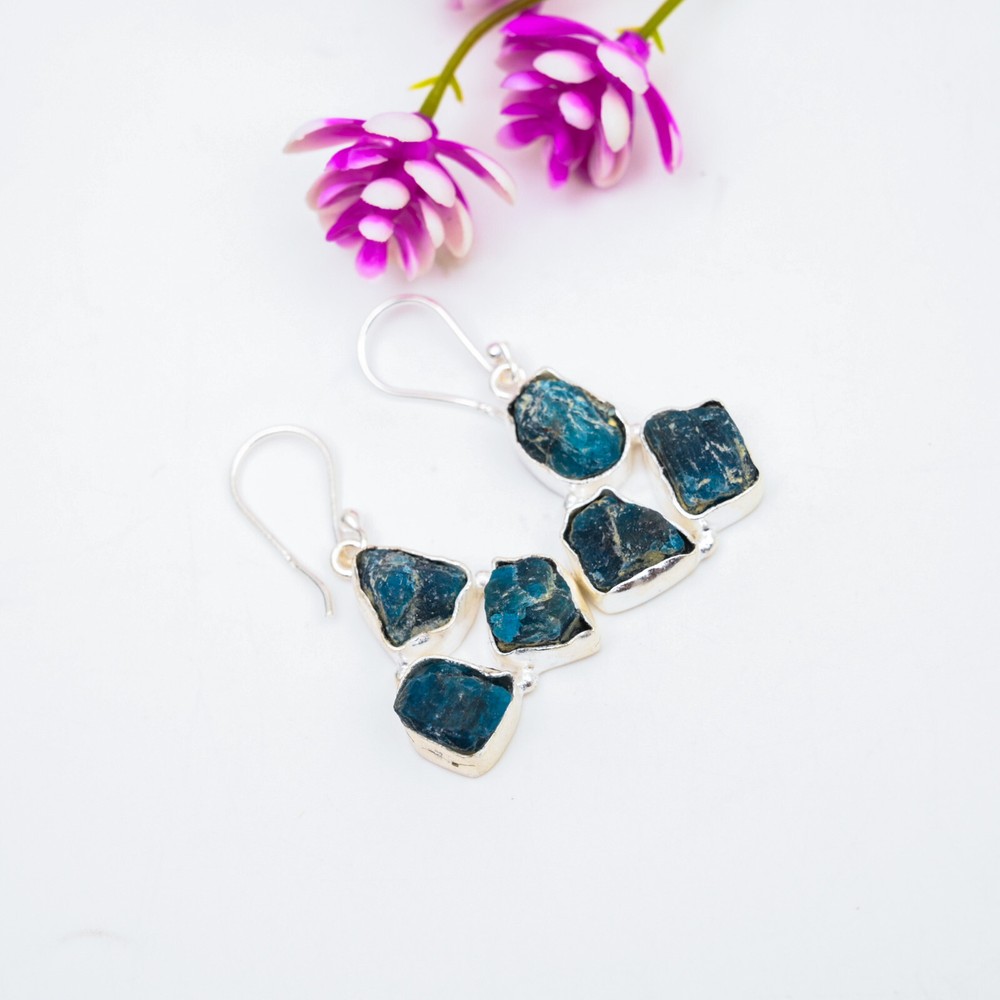 HomeNeon Blue Apatite Sterling Silver Drop Earrings Handmade Jewelry Gift for Her