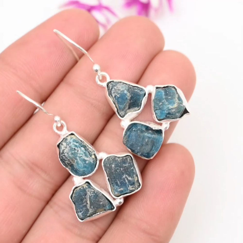 Main Stone Shape:Same As PictureColor:SilverClosure:HookTotal Carat Weight:10 carat and aboveNumber of Gemstones:6Cut Grade:ExcellentShape:N/ADiamond Clarity Grade:N/ACertification:N/AMetal:Sterling SilverStyle:Dangle/DropMain Stone Treatment:Not EnhancedEar Area:LobeCountry/Region of Manufacture:IndiaMetal Purity:925Collection:HandmadeItem Length:N/AMaterial:Stone, GemstoneCountry of Origin:IndiaOccasion:Anniversary, Birthday, Christmas, Engagement, Father's Day, Mother's Day, Valentine's Day, WeddingSecondary Stone:Neon Blue ApatiteBase Metal:Sterling SilverColored Diamond Intensity:N/ASetting Style:BezelDiamond Color Grade:N/ABrand:HandmadeType:EarringsMain Stone:Neon Blue ApatiteMain Stone Color:BlueMain Stone Creation:NaturalNumber of Diamonds:N/ATheme:Beauty, Bohemian, Ethnic, Halloween, Love