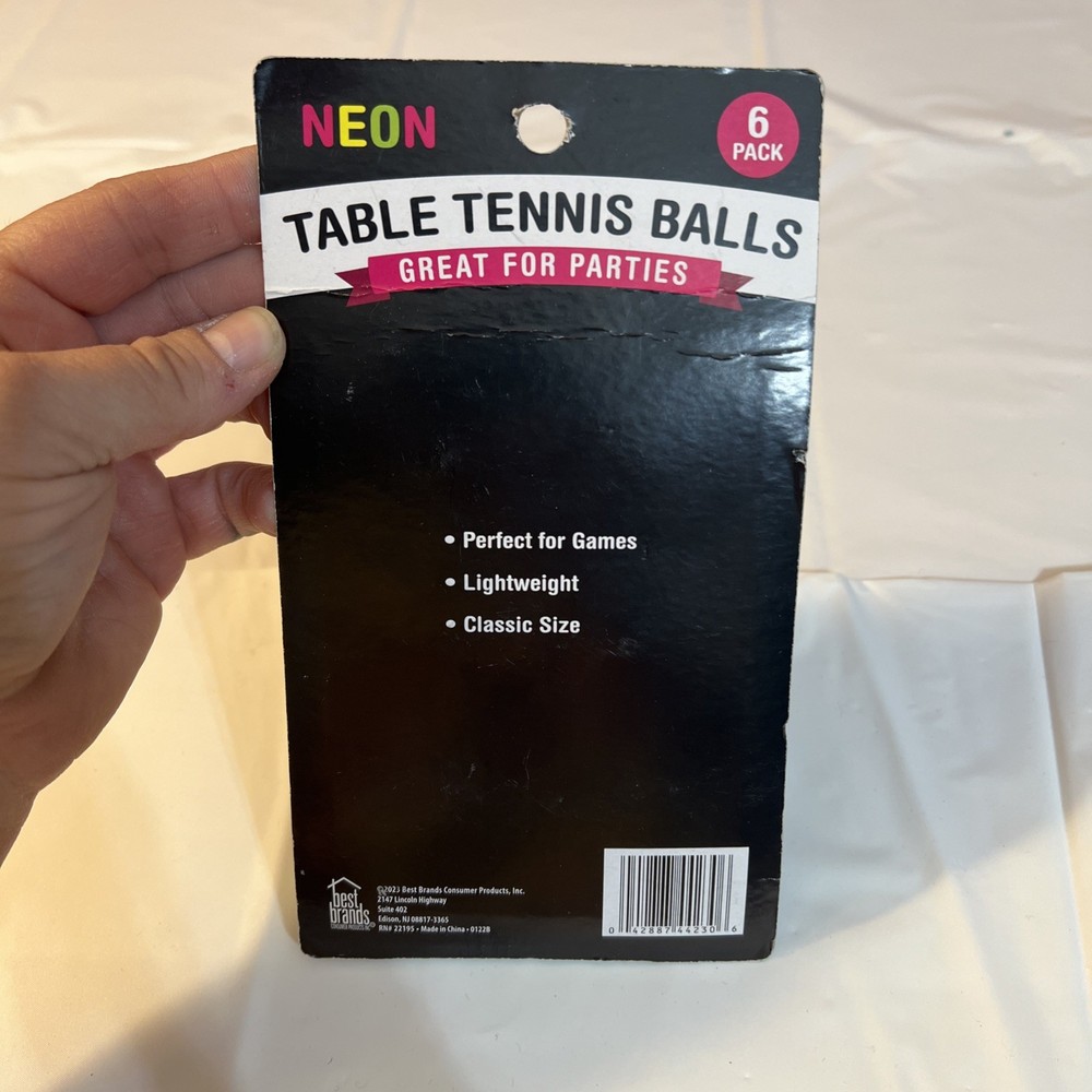 The Neon Table Tennis Balls 6pack by Best Brands is a vibrant and high-quality set of balls designed for table tennis enthusiasts. With a set of six balls in eye-catching neon colors, players can easily track and control the ball during intense matches. These balls are sure to enhance the overall playing experience with their bright and durable design, making them a standout choice for any table tennis player looking to up their game.