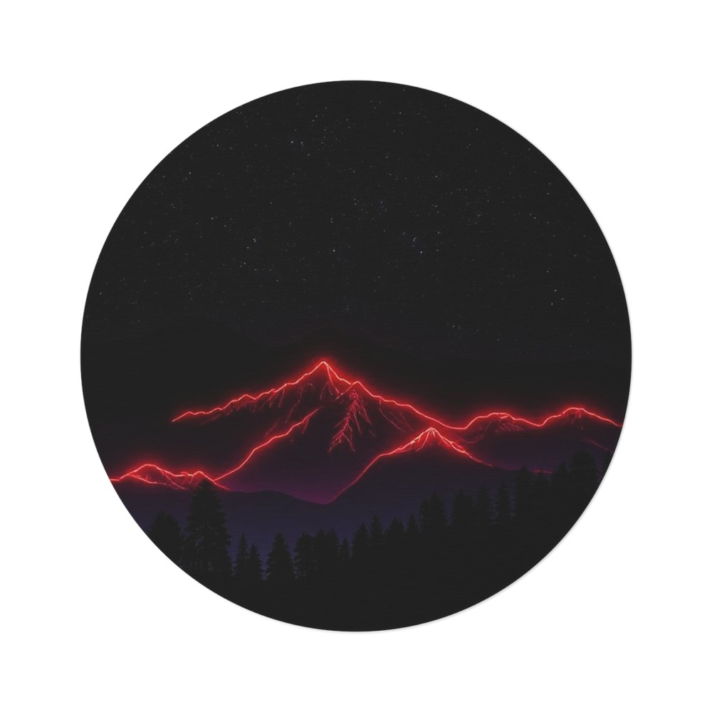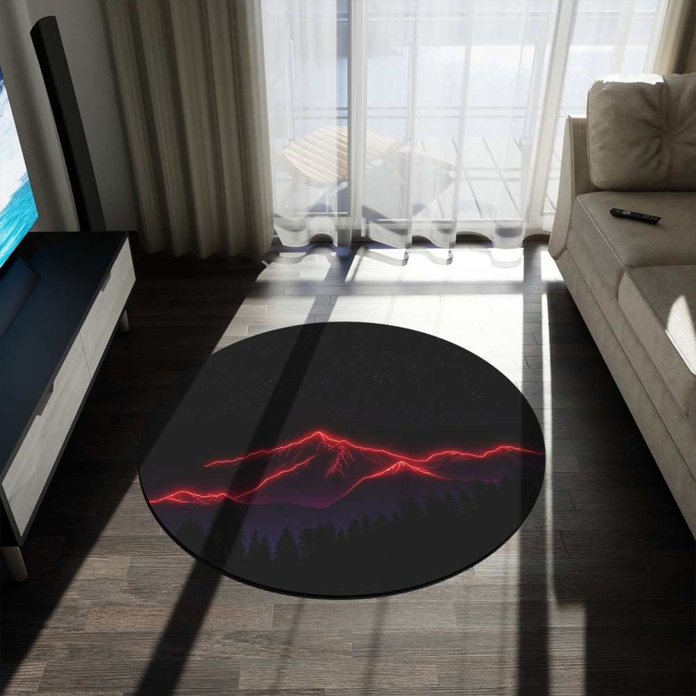 Transform your space with this stunning Round Rug, the perfect blend of comfort and style. Capturing a dreamy, mountain landscape illuminated by vibrant neon tones, this rug creates a captivating focal point in any room. Ideal for living rooms, bedrooms, or even creative studio spaces, it brings a sense of adventure and tranquility to your home. Great for those who appreciate unique art and bold designs, this rug makes a thoughtful gift for home décor enthusiasts, and it's suitable for housewarmings, birthdays, or even festive occasions like Christmas or Thanksgiving. Relax and enjoy a cozy feel underfoot as you step onto this plush, inviting fabric that enhances the atmosphere of your favorite spaces. Embrace creativity and express your personality with every step! Product features - 100% Polyester chenille for a plush feel - Vibrant colors that pop and enhance any room - Hemmed edges for added durability - One size: 60" × 60" (152cm × 152cm) - Durable textured face resists wear and tear Care instructions - Spot clean only - Dryclean