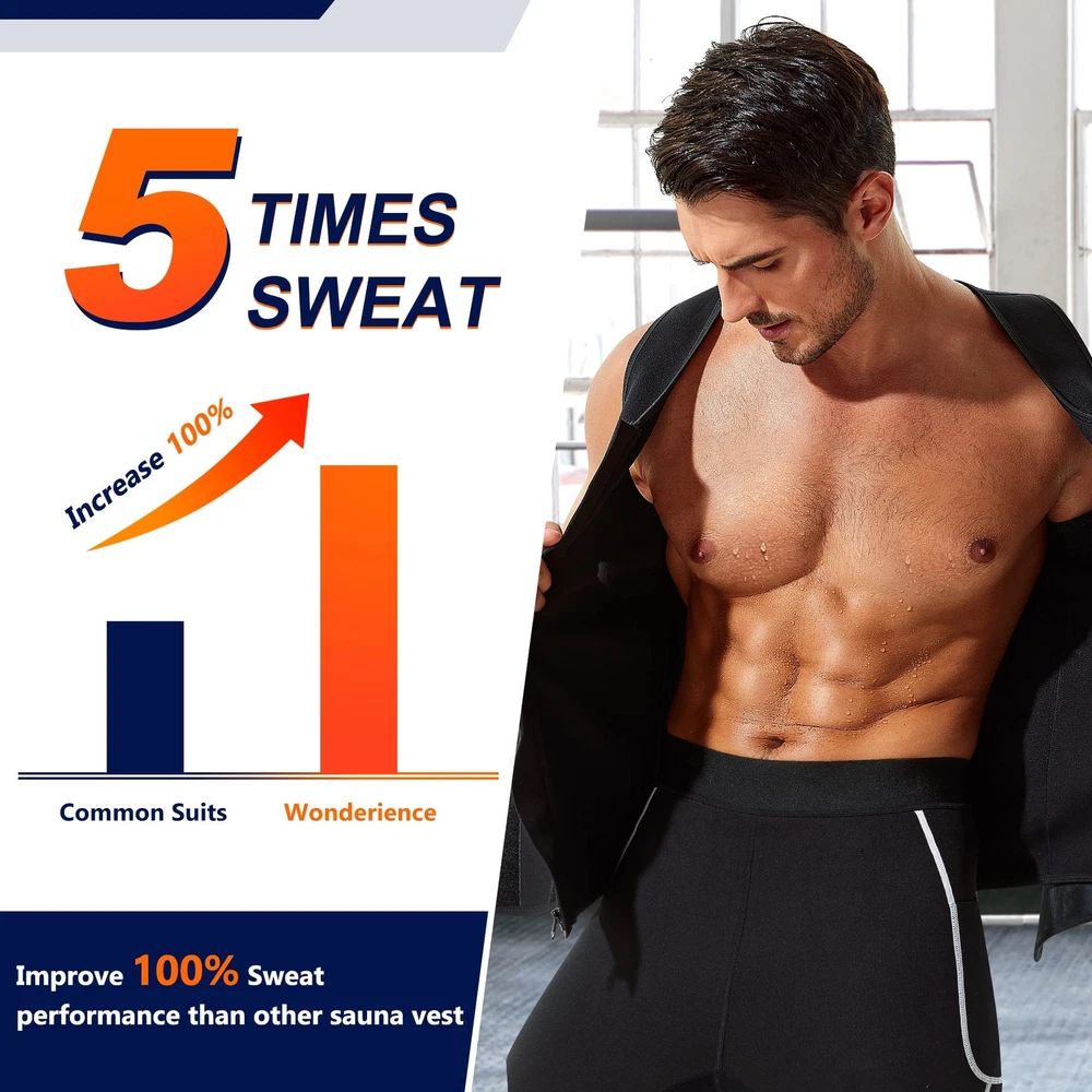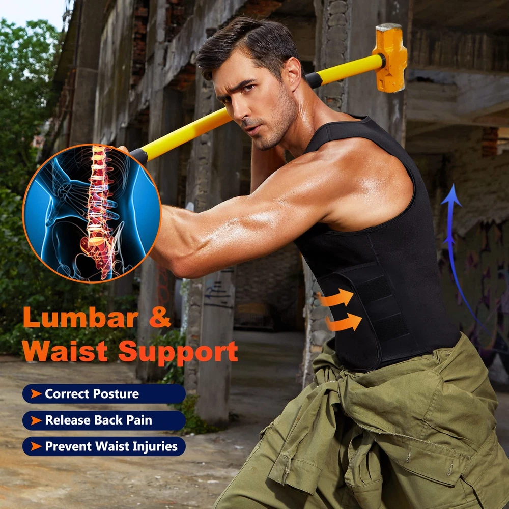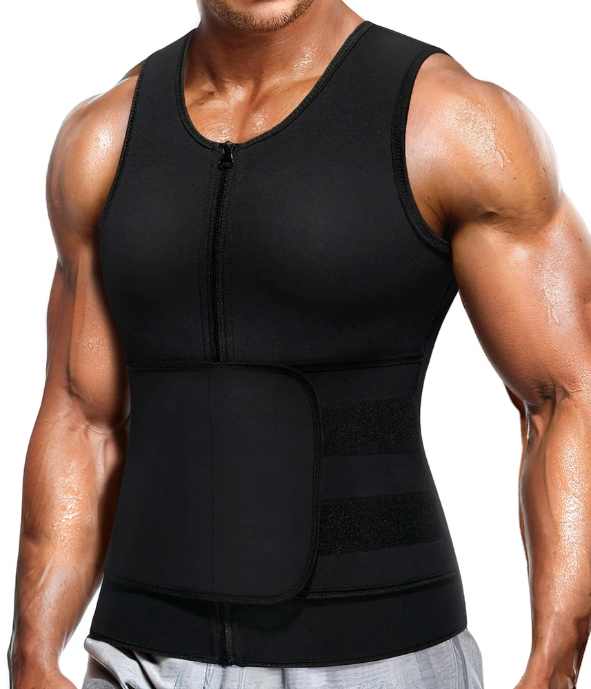 Neoprene Sauna Suit for Men Waist Trainer Vest Zipper Body Shaper with Adjustable Velcro Tank Top Material: inner 100% Neoprene; Outer 100% Polyester BENEFITS: 1.Sauna sweat effect in love handles and fat belly,produce heat in workout to accelerate sweating for weight loss. 2.Make you sweat crazy,3 times than normal,also keep your core body warm during cold days. 3.Help enhance the abdominal and spinal support as you workout. 4.Maximizes fat burning for weight loss,comfortable to wear for daily activities. Tips: 1.It's normal for the smell of the new products,please hang it to air dry or wash it before wearing. 2.Hand wash with normal temperature water and soft detergent after worked out and hang it to air dry. 3.Don't machine wash. Don't iron. Don't bleach. READY FOR SAUNA SWEAT. This 2-in-1 waist trainer vest for men is made of neoprene and polyester synthetic materials,breathable and adjustable,flexible enough to move with.Putting this waist trainer for men on before your exercise routine can help you shed an extra amount of water weight and retain body heat to burn more calories.Also this body shaper men sauna sweat workout vest can keep you warm in cold days. EASY TO PUT ON AND OFF. Upgraded neoprene body shaper with zipper is easy to put on and take off.Faja neopreno hombre to help perfectly contour to your body for a comfortable form fit and keep your shoulders straight.A good compression sauna shirts for men. BEST WASIT TRAINER VEST. Burn belly fat neoprene waist trainer for men with waist trainer is a full vest model targets your core abdominal area,plus outer adjustable belt that ups your thermogenic energy and flattern abdomen to help you work up an intense sweat and shed pounds more efficiently. SUITABLE FOR ALL OCCASIONS. The vest’s compression can flatten fat belly and stomach,correct your posture and helps you sweat rapidly for fat burning and tummy control,men waist trainer vest for weightloss hot neoprene corset body shaper can be worn under all kinds of shirts or shaperwear.It's good for running,gym,playing basketball and sauna,highly-effective exercise tool for men of all shapes and sizes. SATISFIED CUSTOMER SERVICE. Our aim is to provide satisfied experience for all customers,please feel free to contact us if any problem about this neoprene slimming shapewear,we will help you promptly.