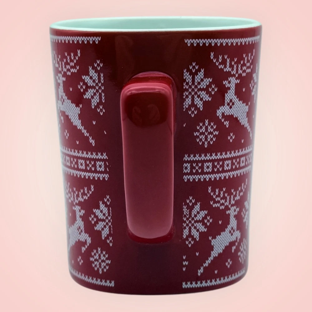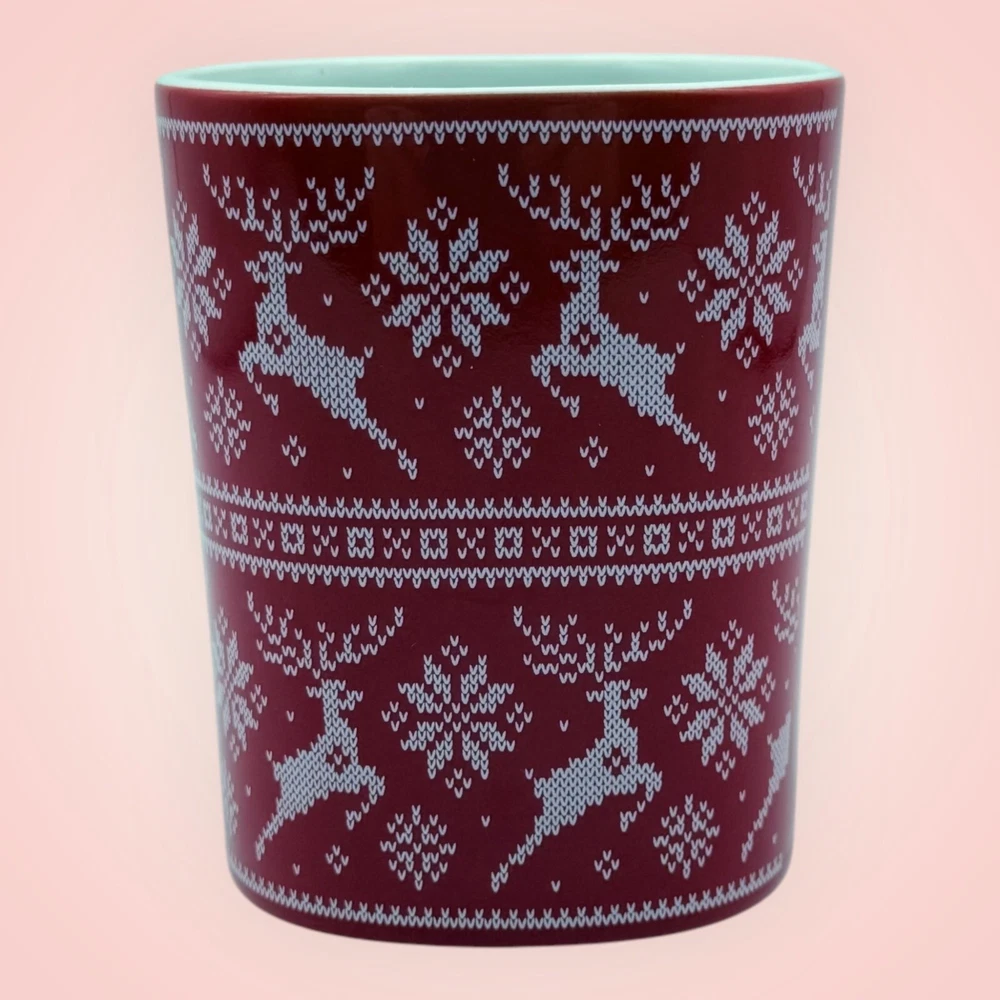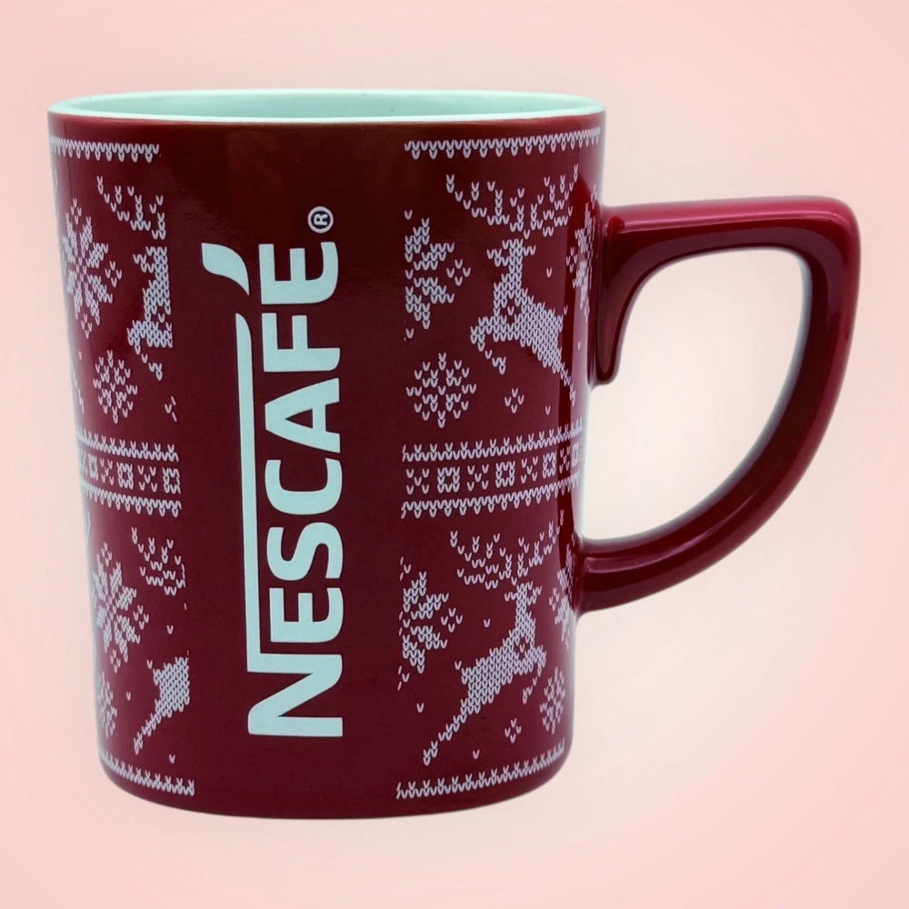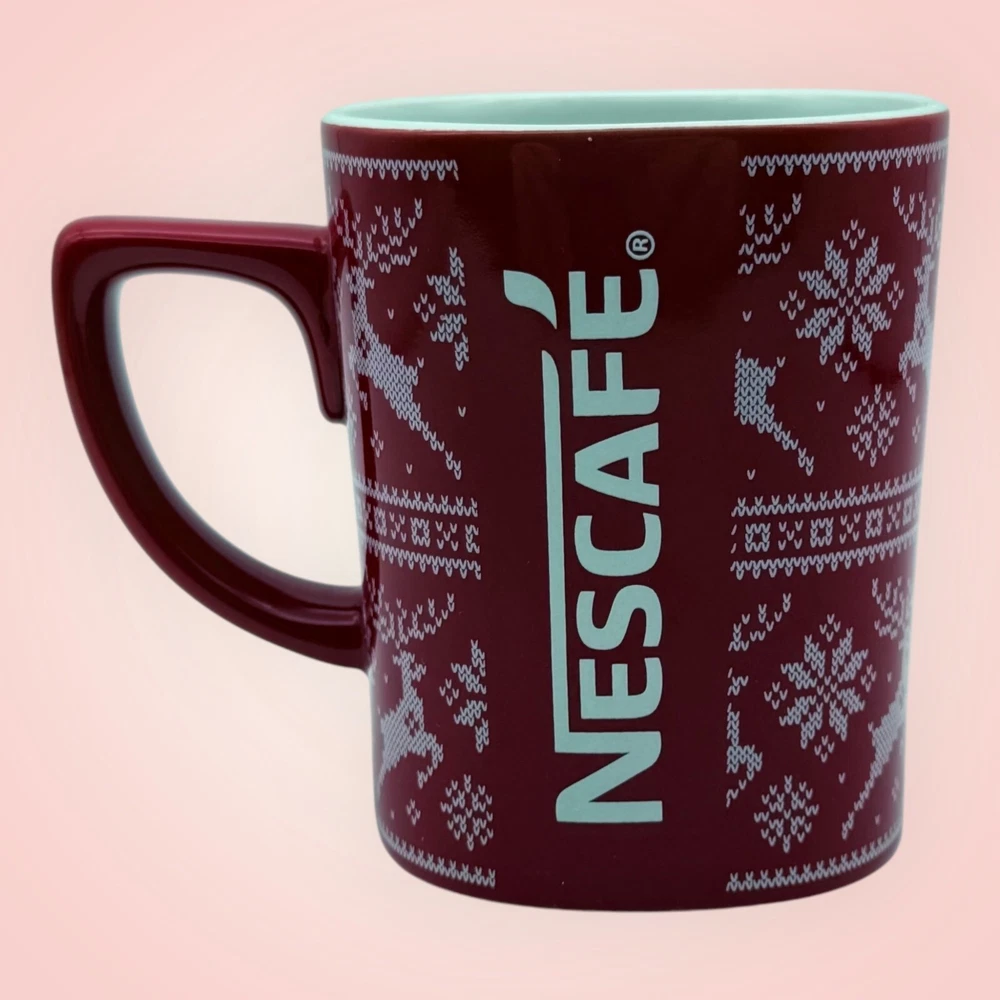 This Nescafé ceramic mug, with a charming red reindeer pattern, is microwave and dishwasher safe. Perfect for your morning coffee ritual. • Red reindeer pattern • Ceramic material • Microwave safe • Dishwasher safe