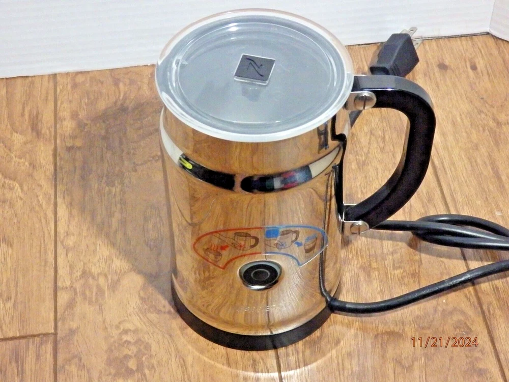 Add some luxury to your morning coffee routine with the Nespresso Aeroccino Plus Automatic Electric Milk Frother Model 3192. This sleek and stylish milk frother is made by the renowned Nespresso brand and is perfect for those who love to enjoy a warm cup of milk with their coffee. With an electric power source and 550 W power, this milk frother is incredibly efficient and easy to use. The silver color and modern design make it a great addition to any kitchen, while the 120 V voltage ensures that it is compatible with a wide range of outlets. This milk frother is made in China and comes with an expired manufacturer warranty, but it has been tested and is guaranteed to be nice. Perfect for coffee lovers who want to add some extra flavor to their morning cup, the Nespresso Aeroccino Plus Automatic Electric Milk Frother Model 3192 is a must-have for any coffee shop or kitchen. The item is in good condition as pictured. I have tested it thoroughly, and it works great. It is complete with all the pieces. I offer fast, low-cost shipping on this item. Please check out my page for other great items and collectibles!