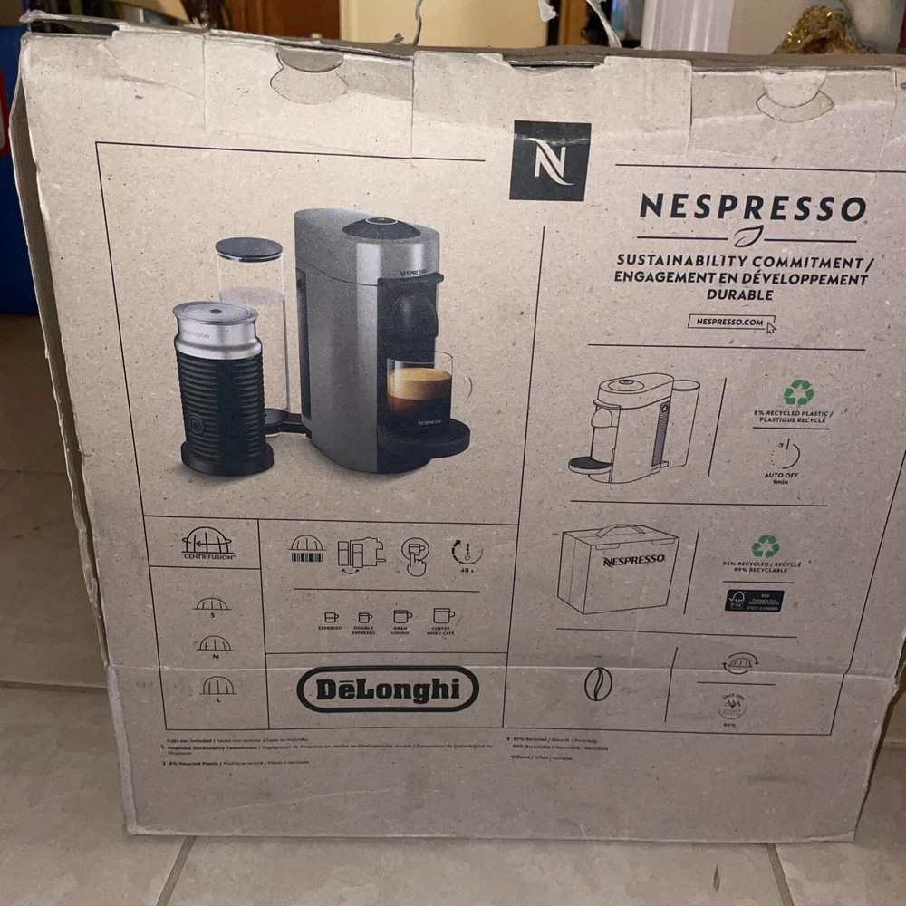 This Nespresso ENV150BM Espresso Machine in Black is a brand new item with a variety of features that make it a great addition to any home. With a bar pressure of less than 5 bar, this machine can make a variety of coffee drinks including espresso macchiato, espresso, latte macchiato, mocha, hot milk, and cappuccino. It also has a water tank capacity of 2.4 lbs and a voltage of 120V. The machine has an auto shut-off feature and energy-saving mode, making it convenient and environmentally friendly. It is compatible with Aquaclean water filtration and has a removable drip tray and water tank for easy cleaning. The cable length is 34 inches, and the item weight is 0.17 lbs. This machine is perfect for anyone who loves coffee and wants a convenient and easy-to-use espresso machine.
