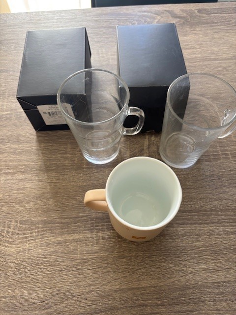 This is a collection of 3 Nespresso Mugs! 1) TWO Nespresso VIEW Collection Atelier Americano Clear Tempered Glass Coffee Mugs made in France. It offers a modern and sleek design perfect for enjoying your favorite coffee. This tapered mug stands at 5 inches tall with a width of 3.25 inches at the rim and holds 12 ounces. It is in excellent pre-owned condition with no chips or cracks. Made from clear glass, it is easy to clean and maintain, ensuring it will last for years to come. Perfect for coffee lovers who appreciate both functionality and aesthetics in their drinkware. 2) ONE Nespresso Jean Imbert Advent Calendar Limited Edition Porcelain Mug 2024 Cities a stylish and modern coffee mug perfect for all occasions. With a round shape and a solid beige color, this medium-sized mug features a capacity of 12 oz and is made of high-quality porcelain. The limited edition design showcases cities from around the world, making it a unique piece for any Nespresso or coffee collector. This unisex adults mug is a great addition to any kitchen or home decor, representing the Nespresso franchise in a timeless and elegant way.