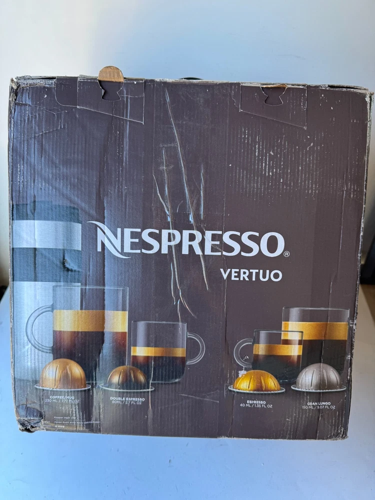 Nespresso Vertuo Coffee Espresso Machine Matte Black Auto Shut-off Programmable Description Nespresso Vertuo Coffee Espresso Machine Matte Black Auto Shut-off Programmable . Product Detail • Brand : Nespresso • Model : Nespresso Vertuo • Color: Black • Type : Coffee & Espresso Machine Please message me if you have any questions.