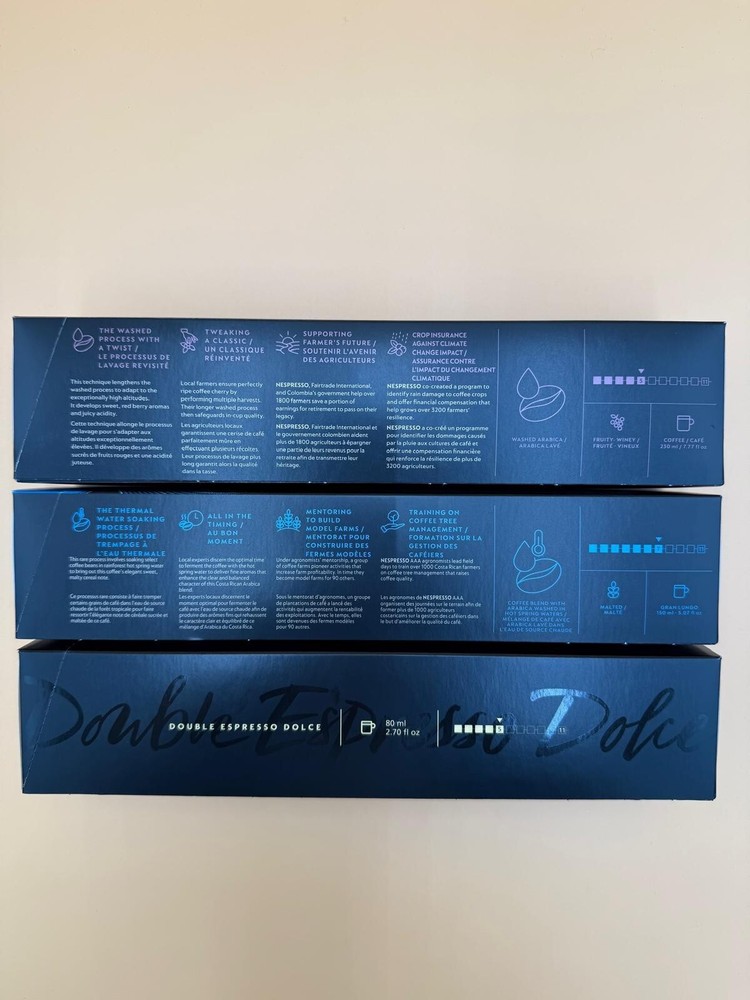 Savor the exceptional quality of Nespresso Vertuo coffee with this variety pack featuring the popular Double Espresso Dolce, Colombia, Costa Rica. Designed specifically for Nespresso Vertuo systems, this pack contains 30 coffee pods (10 pods each flavor),. Each pod is carefully crafted to deliver a perfect cup of coffee, imbued with the distinct flavors that Nespresso is renowned for. Ideal for coffee aficionados who appreciate the finer nuances of their beverage, this variety pack allows you to enjoy a diverse range of flavors without any compromise on quality. Whether it's for your morning ritual or an afternoon treat, these coffee pods are sure to enrich your coffee experience with their smooth, balanced taste. Expiration Dates: Colombia 3-31-25, Costa Rica 3-31-25, Double Espresso Dolce 5-31-25.