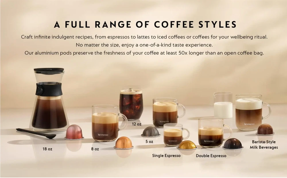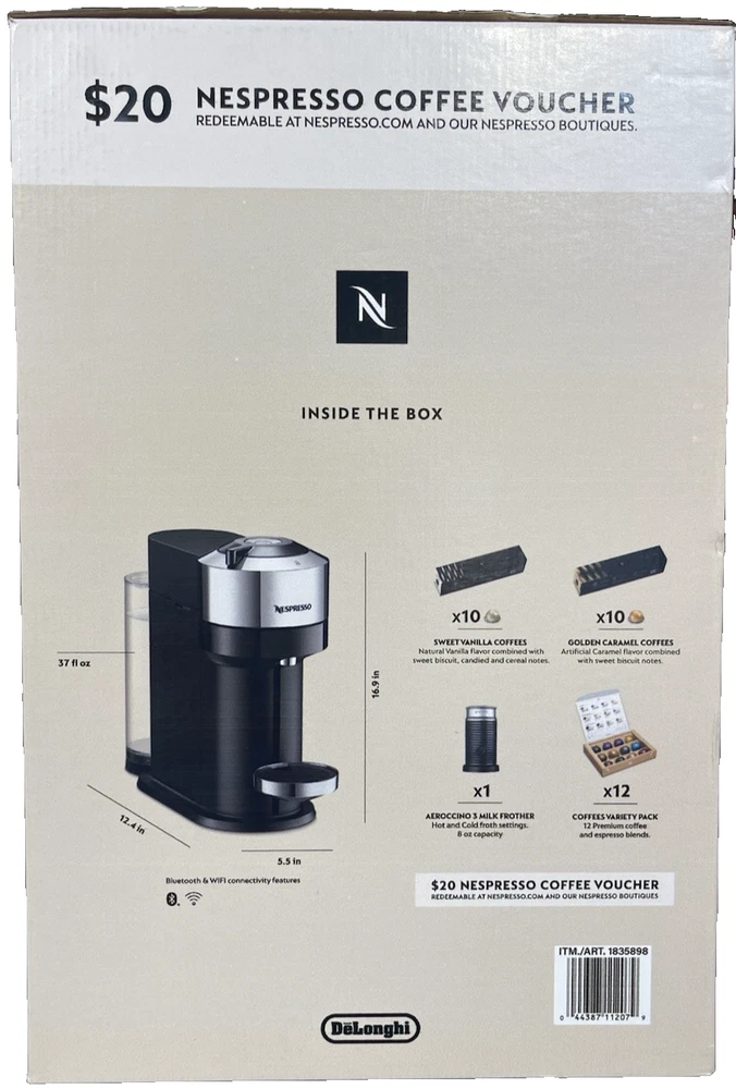 FAST FREE SHIPPING IN USA!!! ORDERS RECEIVED BEFORE 2PM - SAME DAY SHIPMENT!!! AFTER 2PM - NEXT DAY SHIPMENT!!! OUR WAREHOUSE WORKING MO-SAT(9am-9pm) CLEARANCE! Last pieces remaining—future availability currently unknown!!! "Discover our store! Explore a variety of interesting products at great prices. Don’t miss out—check it out now!" Features: Aeroccino 3 Milk Frother for Cappuccinos and Lattes 32 Coffee & Espresso Capsules Included - VALUE 40$ $20 Coffee Voucher to Nespresso.com Specifications Brand Nespresso Dimensions: W x D x H 5.5 in. x 14.2 in. x 12 in. Model ENV120CAE Type Single Serve Water Tank Capacity 37 Ounce Weight 8.8 lb.