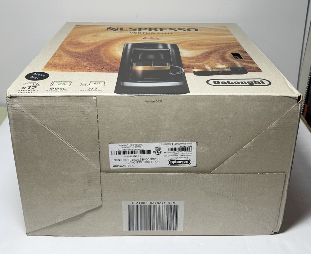 Bar Pressure:Less than 5 barControl Panel:AnalogType of Coffee Made:Espresso Macchiato, Espresso, Latte Macchiato, Mocha, Hot Milk, CappuccinoModel:ENV150BMColor:BlackCountry of Origin:United States - USWater Tank Capacity:2.4 lbItem Depth:5.59 inCable Length:34 inFeatures:Removable Drip Tray, Auto Shut-off, Water Tank, Easy to Clean, Energy Saving Mode, Removable Water TankPower:1260 WCompatible Water Filtration:AquacleanType:Espresso MachineCompatible Capsule/Pad System:NespressoItem Width:16.88 inPower Source:Wall Plug-ingtin13:0044387041508Brand:NespressoCoffee Type:CapsuleItem Weight:0.17 lb.MPN:ENV150BMFinish:MatteNumber of Cups:1Material:PlasticUPC:0044387041508Item Height:12.79 inVoltage:120 V