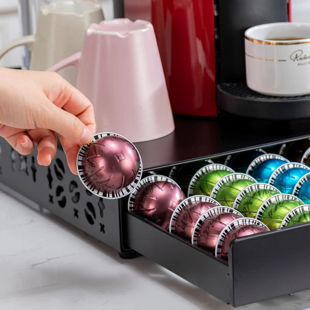 FlagShip for Nespresso Pod Holder Vertuo Pod Storage Coffee Pod Organizer Coffee Bar Design And Coffee Machine Stand Black Metal(50 Pods Capacity) 【Elegant, Sleek and Versatile】Flagship vertuo pod hloder adopt modern design and easy to blend into the coffee bar, so that your coffee bar looks more elegant. 【50 Vertuo Capacity】Holds up to 50 pods for Nespresso Vertuo pods. This capsules holder holded up 5 boxes pods capacity with Vertuo Next, Vertuo Plus, Vertuo Evoluo ect. 【Save Space】Size:12.6''*16.07''*3.23''.You only need to use a small area to fit a large number of Nespresso pods.That's enough coffee for your entire family for a week, but takes up a lot of your little counter space. 【Sturdy Frame】Upgraded frame ensures not easily to brend like other normal pillar frame.All frame is made of metal which has longer life than plastic. 【Easy to Organize】Easy to pull out drawer and put in pods offer the best user experience. The hollow place design can be organized your coffee capsule easily. The FlagShip Vertuo Pod Holder is a sleek and elegant solution for organizing your Nespresso Vertuo pods. With a capacity of 50 pods, this holder can accommodate up to 5 boxes of pods for Vertuo Next, Vertuo Plus, Vertuo Evoluo, and other Vertuo models. Its modern design, made of durable metal, ensures a sturdy frame that blends seamlessly into your coffee bar. The easy-to-pull-out drawer allows for effortless organization and retrieval of your coffee capsules. Measuring at 12.6''*16.07''*3.23'', this pod holder saves space while providing ample storage for your coffee needs. Experience the perfect combination of style, functionality, and convenience with the FlagShip Vertuo Pod Holder. Shipping We offer FREE shipping on all orders! We ship within Three business days of payment, usually sooner. We use a selection of shipping services such as UPS, FedEx, USPS etc. We only ship to the lower 48 states, no APO/FPO addresses or PO Boxes allowed. Local pickups and combined shipping options are not provided at this time. Return You can return a product for up to 30 days from the date you purchased it ONLY if it's in the original condition. The product cannot be used or open. Any product you return must be in the exact same condition you received it and in the original packaging. Please keep the receipt. Feedback Customer satisfaction is very important to us. If you have any problem with your order, please contact us and we will do our best to make you satisfied. Contact Us If you have any queries, please contact us via ebay. We usually respond within 24 hours on weekdays. Please visit our eBay store to check out other items for sale! Thank you for shopping at our store.