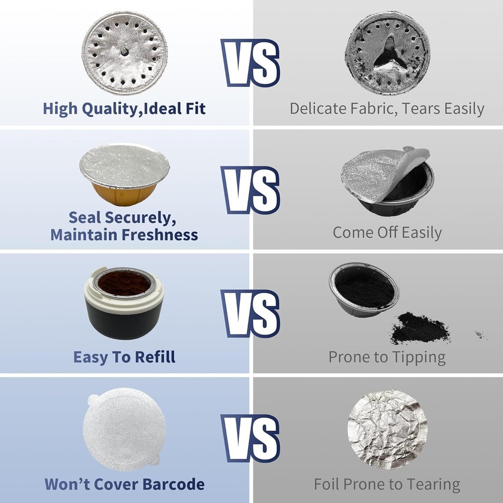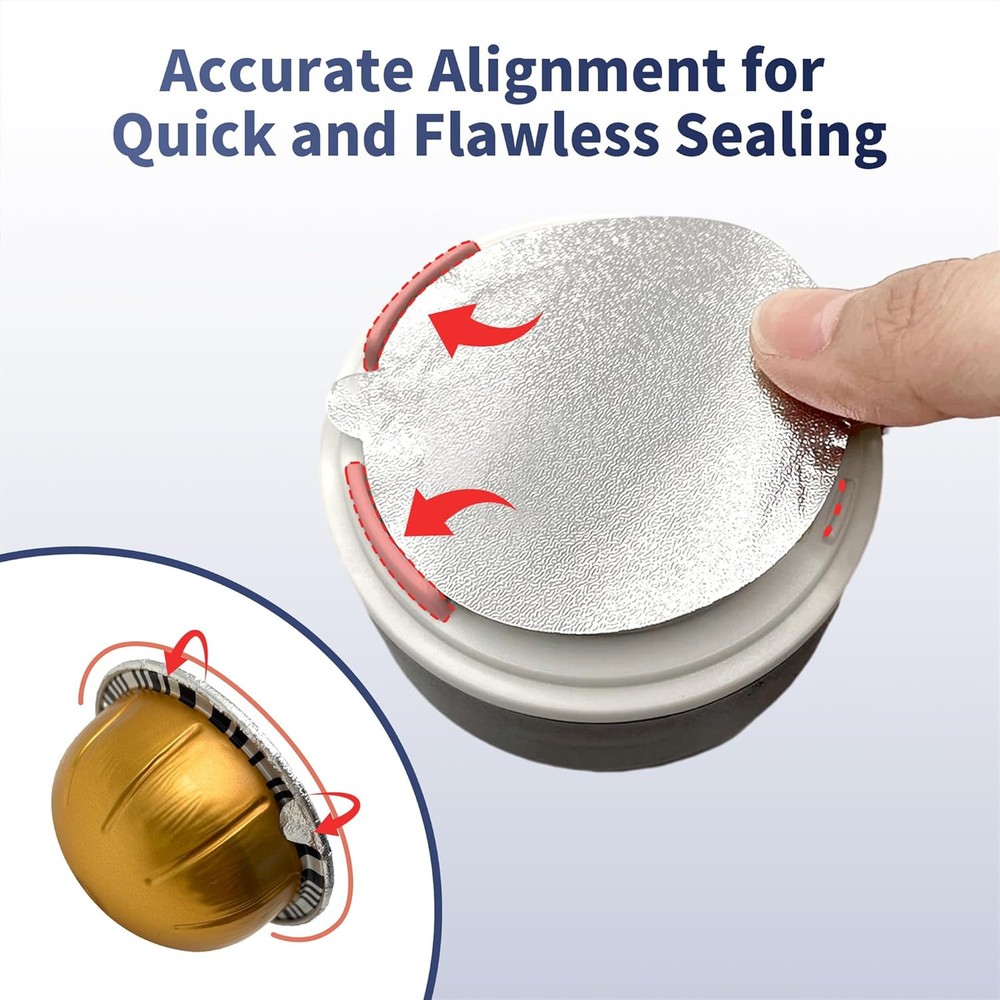 Reusable Pods Kit for Nespresso Vertuo, 1 Holder + 100 Lids + 1 Scoop Product Details Material: Aluminum Brand: sootozy Shape: Basket Number of Pieces: 100 Unit Count: 1.0 Count Manufacturer: sootozy Package Dimensions: 6.73 x 3.39 x 2.72 inches Item Weight: 9.9 ounces Country of Origin: China Item model number: COF-02 Save money and Reduce Waste: With our Reusable Pods Kit, there's no longer any need for wasted foil tops or grounds scattered everywhere. It's a fantastic solution for saving money and cutting down on both paper and coffee waste Designed for Nespresso Vertuo Capsules: Our coffee pod covers foil lids kit is specifically designed for Nespresso Vertuo Capsules, accommodating cup sizes of 1.35oz, 2.7oz, 5.07oz, and 7.77oz. Please note that it is not compatible with Nespresso OriginalLine Capsules. Comprehensive Kit: Our reusable coffee capsule kit for nespresso comes complete with a capsule base, 100 aluminum foil seals, a cleaning brush, and a scoop (pods not included). With this kit, you can effortlessly craft high-quality, reusable coffee pods using your favorite coffee. Easy to Use: Refilling your coffee pods with our reusable pods kit is quick. simply place the emppodsty capsule into the base, add your preferred coffee, and use the foils to align along the edge of the capsule. then, press the top cover of the base to create a new capsule. Flawless Sealing for Your Nespresso Vertuo Pods: Our reusable pods for nespresso ensures a perfect seal every time, preventing any messy spills caused by unsealing capsules.