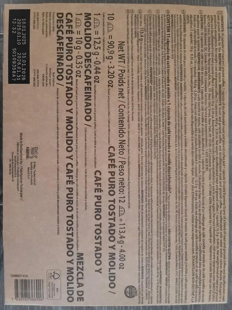 Expiration Date: 01/31/2026 Country of Origin: Switzerland Brand: Nespresso Product: Coffee Pod & Capsule Number of Servings: 144 Type: Espresso Food Aisle: Pantry Flavor: MIXED Serving Size: mixed sizes Compatibility: Nespresso