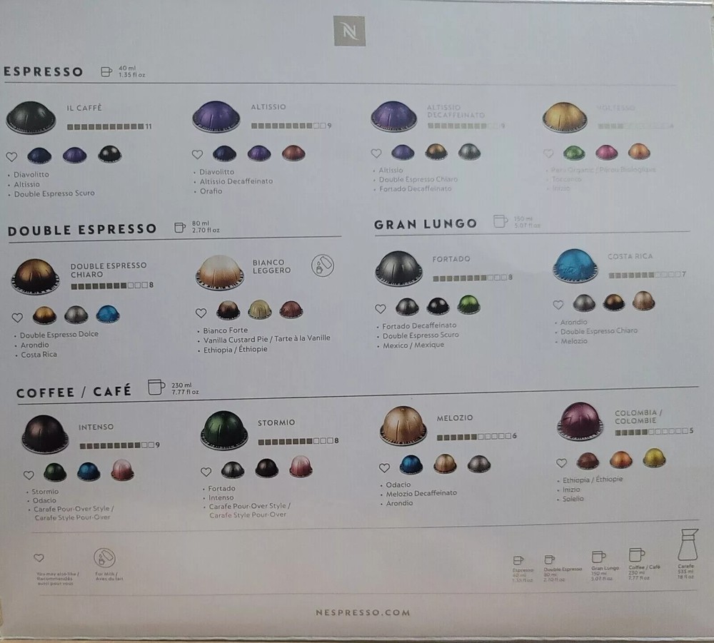 Nespresso Vertuo Vertuoline Variety 12xPk12 Total 144 Capsules Pods BULK/LOOSE