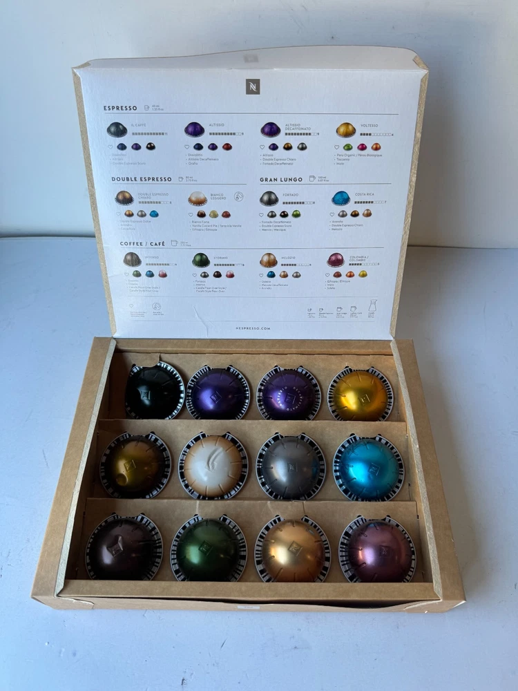 Nespresso Vertuoline Smooth Flavor Coffee Pod and Capsule Sample Pack (12 Count) Description Nespresso Vertuoline Smooth Flavor Coffee Pod and Capsule Sample Pack (12 Count) . Product Detail • Brand : Nespresso • Model : Nespresso Vertuoline • Color: White • Type : Coffee Pod and Capsule Please message me if you have any questions.