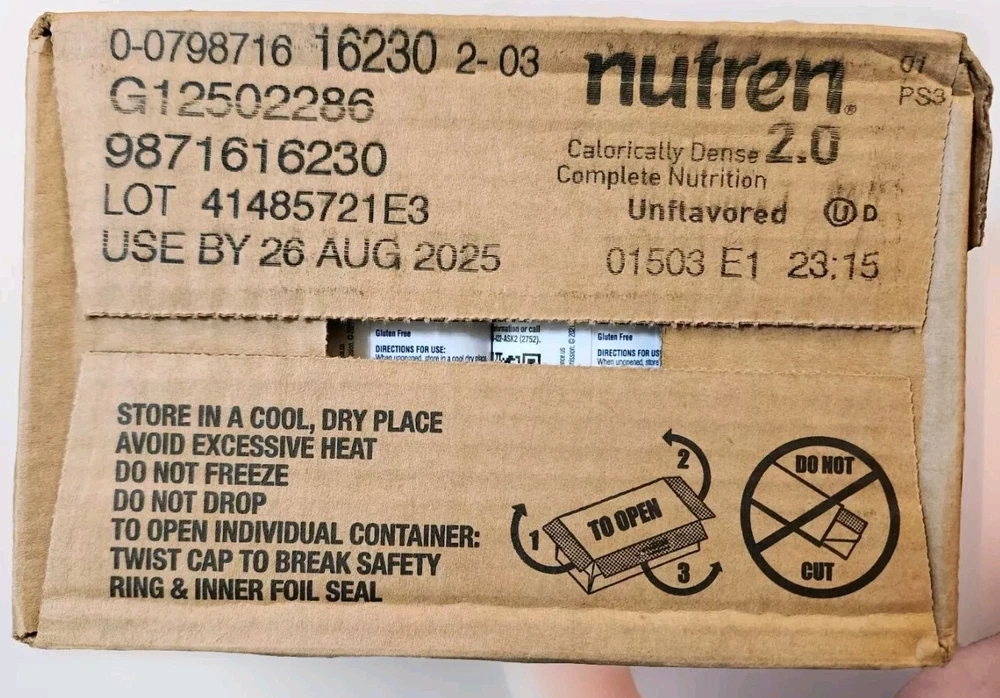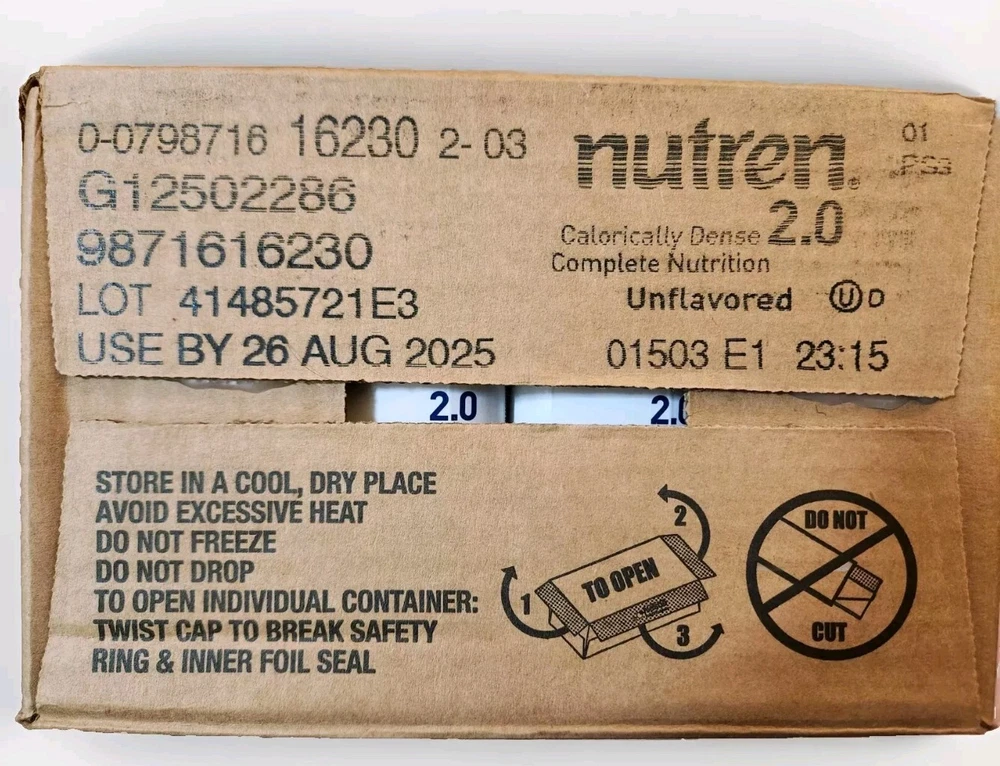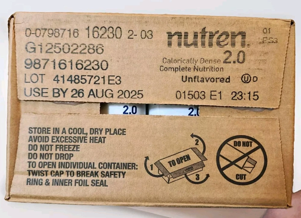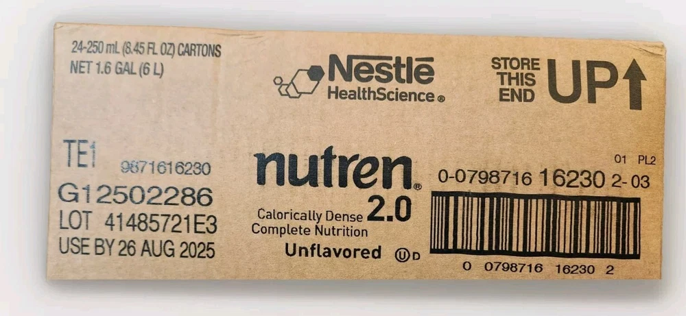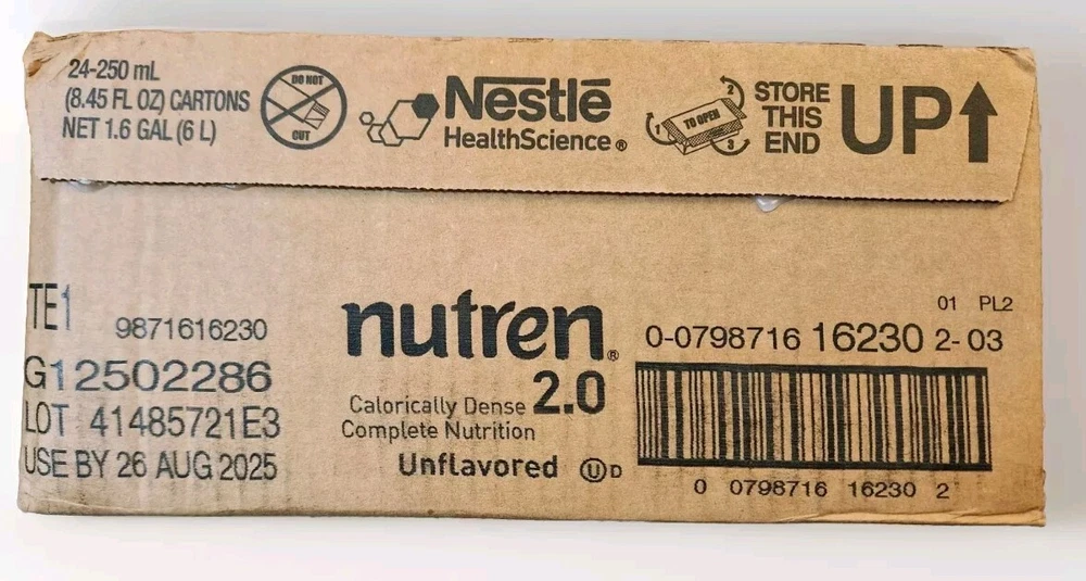 Nestle Nutren 2.0 Feeding Formula Unflavored 8.45 oz. Case of 24, Exp 08/26/2025.