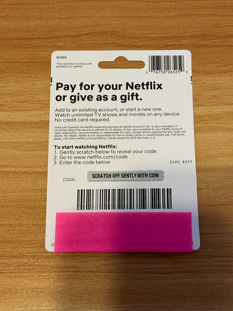 Netflix gift card - $30 No expiration date PLEASE DO NOT PURCHASE IF YOU DO NOT INTEND ON PAYING FOR IT!!!!! YOU WON'T GET IT OTHERWISE FOUR TIMES IS ENOUGH