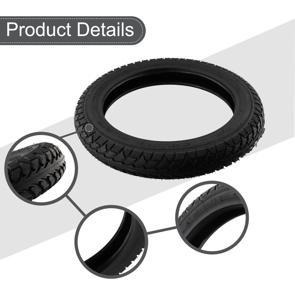 14 Inch Electric Bike Tyre Banlance Tyre E-bike Tubeless 14x2.125 54-254 Tyre DESCRIPTION Description: *Brand new and high quality *Made of rubber material, and Wearproof *Not easy to deform, can be use for long time Specification: *Material: Rubber *Color: Black *Weight: 995g *Model: 14x2.125(57-254) Package Includes: 1 x Tubeless tyre Note: 1. The real color of the item may be slightly different from the pictures shown on website caused by many factors such as brightness of your monitor and light brightness. 2. Please allow slight manual measurement deviation for the data. POLICES Shipping Payment WARRANTY We only ship to confirmed ebay Order addresses. Please comfirm that your Order address is in line with your shipping address. Please kindly note that the c ombined shipping is not provided because the shipping fee is calculated by weight. Also, the each additional item means exactly the the same color and size. It takes about 7 -15 working days to US; about 10-30 working days to other countries. Transit time may be a little delayed because of the bad weather and customs inspection . If you do not receive your item within 30 working days since payment finished, please contact us immediately for further assistance. Payment must be completed within 5 days. If you have any problems about payment, please contact us via ebay message. We strive for 100% customer satisfaction! Positive Feedback is very important to us. If you have any questions, p lease feel free to contact us via "Ask seller a question" . We will reply your email within 24 working hours. On Jan 2, 2025 at 09:49:36 PST, seller added the following information: