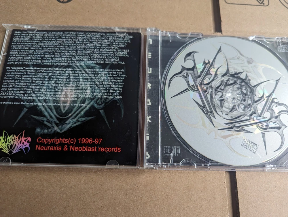Neuraxis-Imagery CD from 1997 on Neoblast Records. 12 song original CD not the reissue from few years ago. Booklet in excellent condition. CD plays and rips perfect. None on discogs so. 😄