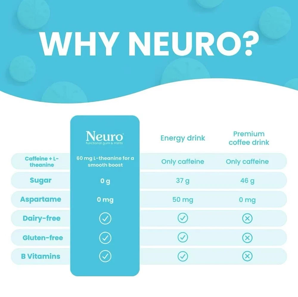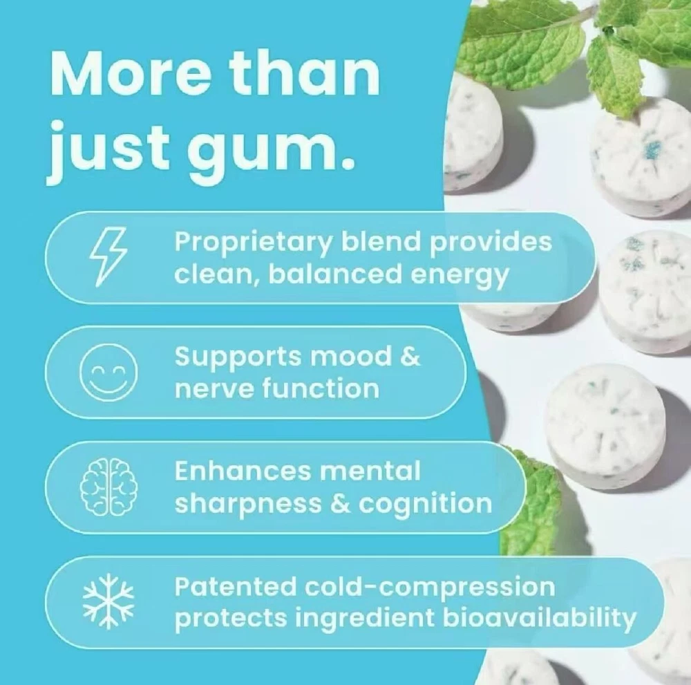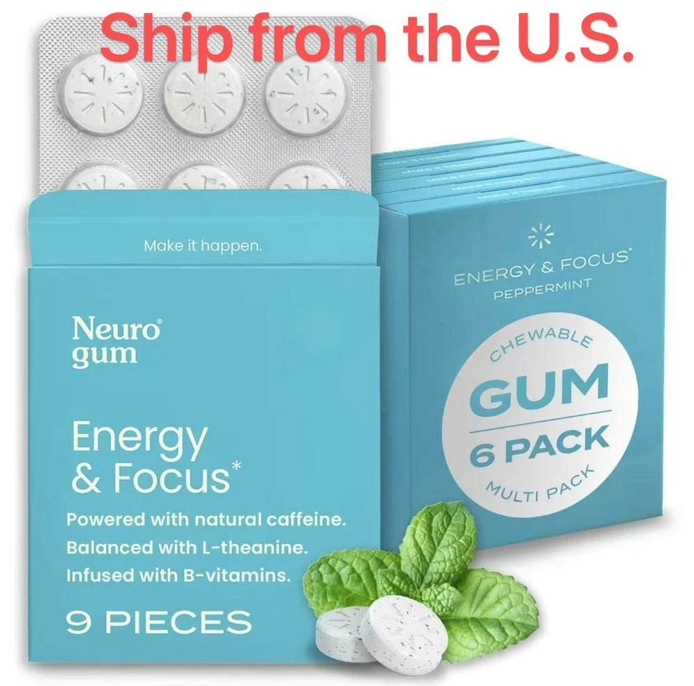 9 Pack Neuro Energy and Focus Gum Mint Sugar Free Caffeine Boost Travel Friendly