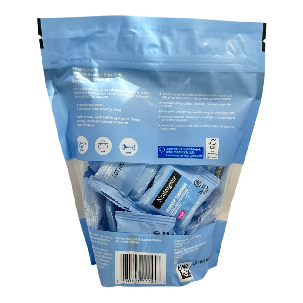 Neutrogena Makeup Remover Ultra-Soft Cleansing Towelettes Singles -20 Plant Based- 7.2" x 6.4" (18.5 x 16.5 cm) NEW SEALED