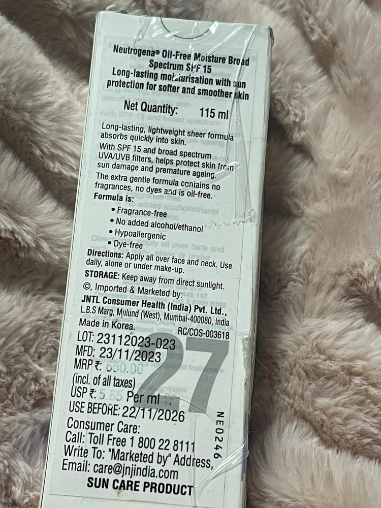 Neutrogena Oil-Free Moisture Facial Moisturizer with UVA/UVB Protection.