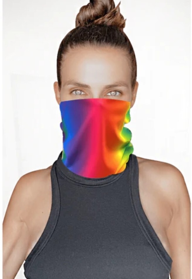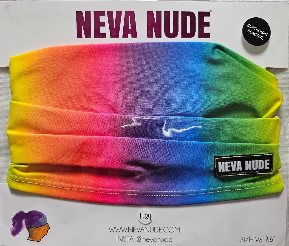 Neva Nude Neck Gaiter Multicolored Rainbow Road Sexy Necksie Face Covering Multicolored. Polyester & Silk Blend. Width: 9.6" Flat Length: 14" Flat New With Packaging/Tags. (FREE SHIPPING) Crafted with the finest hand selected fabrics with an awesomeness akin to those found on the Silk Road. Breathable, comfortable, and fashionable. Over 10 different ways to wear! Can be used as a face covering to protect from dust, cooties, wind, and aesthetic apathy. MADE IN THE USA by a Female owned company. Feel free to ask any questions you may have. Take a look at our other items. Our inventory grows daily.
