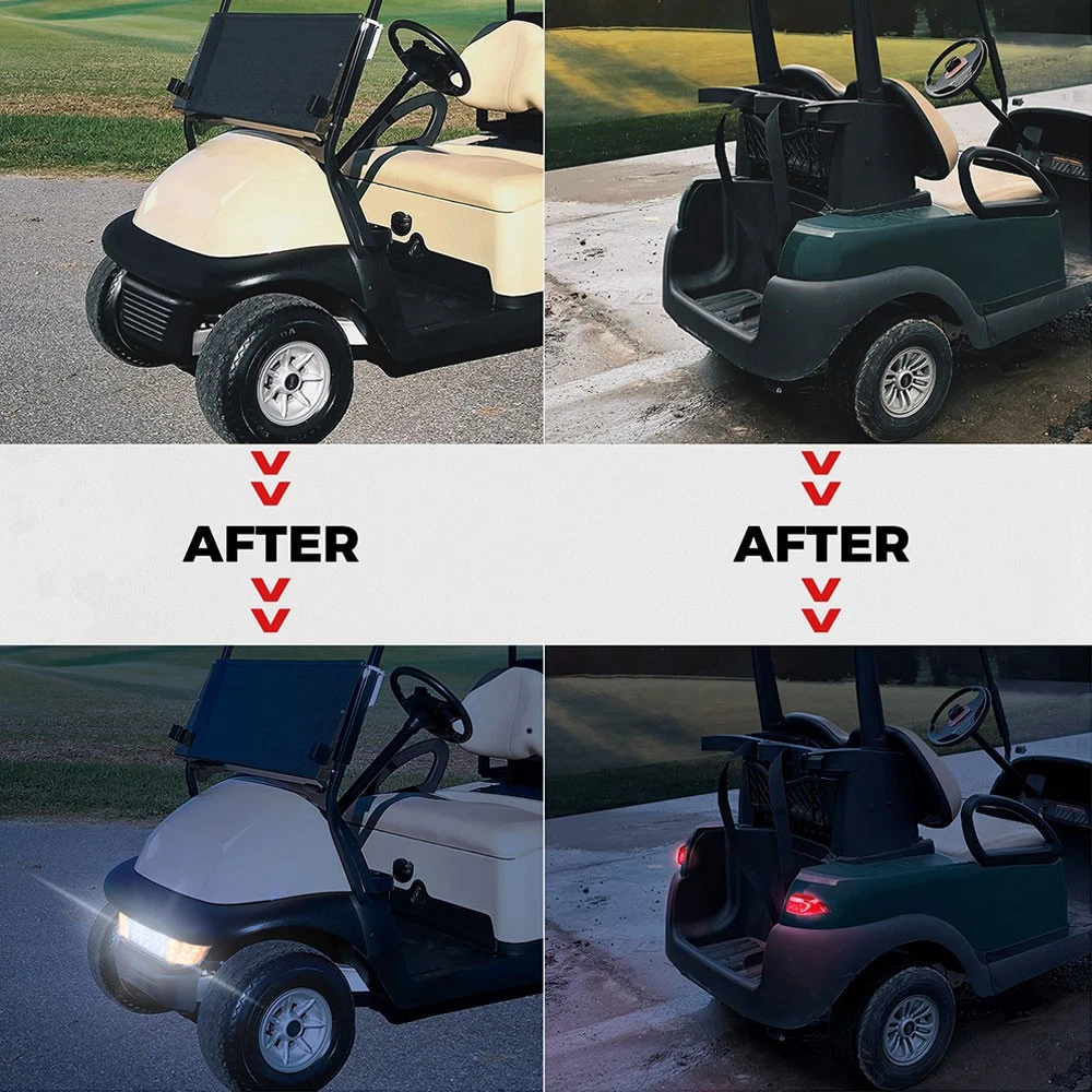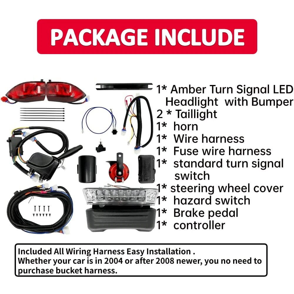 Tailored for Your Club Car Precedent 2004+ This complete golf cart light kit includes everything for your Club Car Precedent 2008+ and up, including front headlights, rear taillights, turn signals, brake lights, wiring harness, horn, zip ties, and more. No extra parts needed. Upgrade your golf cart's lighting system. The LED headlight and tail light kit provide a wide lighting range and clear visibility of the road, letting you drive easily in low light or at night. With high-intensity brake lights, your golf cart gives immediate warning to approaching drivers, minimizing the chance of rear-end collisions. This golf cart light kit provides you with excellent visibility in rainy or foggy conditions, solving common lighting problems that can hinder driving. With high-brightness front and rear lights, it ensures a more secure driving experience, even in challenging weather. All of our items are backed with a 30-day return policy. We ensure all our items are new and in excellent condition prior to shipping. In case you receive the item that is not to the standards above, please contact us via e-Bay messages. All returns must be in new original condition as received and should be shipped with delivery confirmation Please note that all returns must be pre-approved by us. Unauthorized returns will not be accepted. If you need to return, please check twice to confirm the item not work and contact our customer service representative, let us know the detailed problem and send us some pictures for confirmation. We ONLY accept returns with original package. Please make sure that item has NO man-made sabotage. Used items will not be accepted for return. Email Customer Support: 9:00am-2:00am PST Sunday-Friday All emails will be responded to within 12-24 hours This item comes with 12 months Warranty from the date of customers purchased it. Special circumstances will be listed clearly in the listing. If your item has been damaged in transit or become faulty in warranty period, please email us with pictures or video to show the problem. Please do check everything carefully after you received the parcel, any the damage except DOA (Dead-On-Arrival) would not be covered if it's your fault. Replacement products are provided with the same warranty as the returned products. Tailored for Your Club Car Precedent 2004-2008 This complete golf cart light kit includes everything for your Club Car Precedent 2004-2008, including front headlights, rear taillights, turn signals, brake lights, wiring harness, horn, zip ties, and more. No extra parts needed. Upgrade your golf cart's lighting system. The LED headlight and tail light kit provide a wide lighting range and clear visibility of the road, letting you drive easily in low light or at night. With high-intensity brake lights, your golf cart gives immediate warning to approaching drivers, minimizing the chance of rear-end collisions. With its durable ABS housing, our golf cart light kit performs flawlessly even in rainy or dusty conditions, no matter the weather, making it ideal for outdoor driving. This golf cart light kit provides you with excellent visibility in rainy or foggy conditions, solving common lighting problems that can hinder driving. With high-brightness front and rear lights, it ensures a more secure driving experience, even in challenging weather. Equipped with long power cable, our golf cart light kit allows you to easily adjust the wiring based on your golf cart’s structure and installation location, avoiding installation difficulties and messy wires caused by insufficient cable length. Features & Details Ideal Fit for Your Golf Cart: Designed for Club Car Precedent 2004-2008, this golf cart light kit installs without modifications or adjustments. Whether you’re replacing old lights or Upgrading lighting system, it can give your golf cart a fresh look One Switch, Total Control: The integrated multi-function turn signal switch allows you to easily control the horn, headlights, and left/right turn signals. Clear indicator lights and simple operation help you stay focused on the road Light Up Your Drive: Featuring quality LED bulbs, our golf cart lights delivers clear, bright illumination while consuming less energy and ensuring a long lifespan. Say goodbye to frequent bulb replacements Drive with Peace of Mind: Our golf cart light kit features a waterproof horn and durable brake pads, supporting 12 voltage. Whether it’s rainy or rough terrain, the horn stays clear, and the brakes are quick with dual protection All-in-One Convenience: This street legal golf cart light kit comes with everything you need, including wiring harness, horn, zip ties, turn signal covers, and brake pads. No need for extra purchases, making installation a breeze SHIPPING Please be aware that PO Box cannot receive items, please DO NOT fill in the PO Box address. DELIVERY DAYS: 3-7 BUSINESS DAYS 3 BUSINESS DAYS SHIPPING OUT SHIP FROM CA & TX & NJ & GA & NC &OR WAREHOUSE California Warehouse: City of Industry, CA Texas Warehouse : Houston, TX New Jersey Warehouse : Perth Amboy, NJ New York State Warehouse: Perth Amboy, NJ Georgia Warehouse: Austell,GA North Carolina Warehouse: Grove NC Oregon Warehouse: AIRPORT WAY Portland,OR PAYMENT We accept PayPal payment,PayPal Credit,Credit card or debit card and so on. Payment should be completed within 4 (Four) days of auction closing. Or unpaid dispute will be filed for closing auction. We will leave a positive feedback immediately after payment is received. We appreciate a positive feedback as much as you do. If for some reason there is any issue with the purchase, please contact us prior to leaving feedback, we will be glad to work together and provide a satisfying solution. RETURNS All of our items are backed with a 30-day return policy. We ensure all our items are new and in excellent condition prior to shipping. In case you receive the item that is not to the standards above, please contact us via e-Bay messages. All returns m