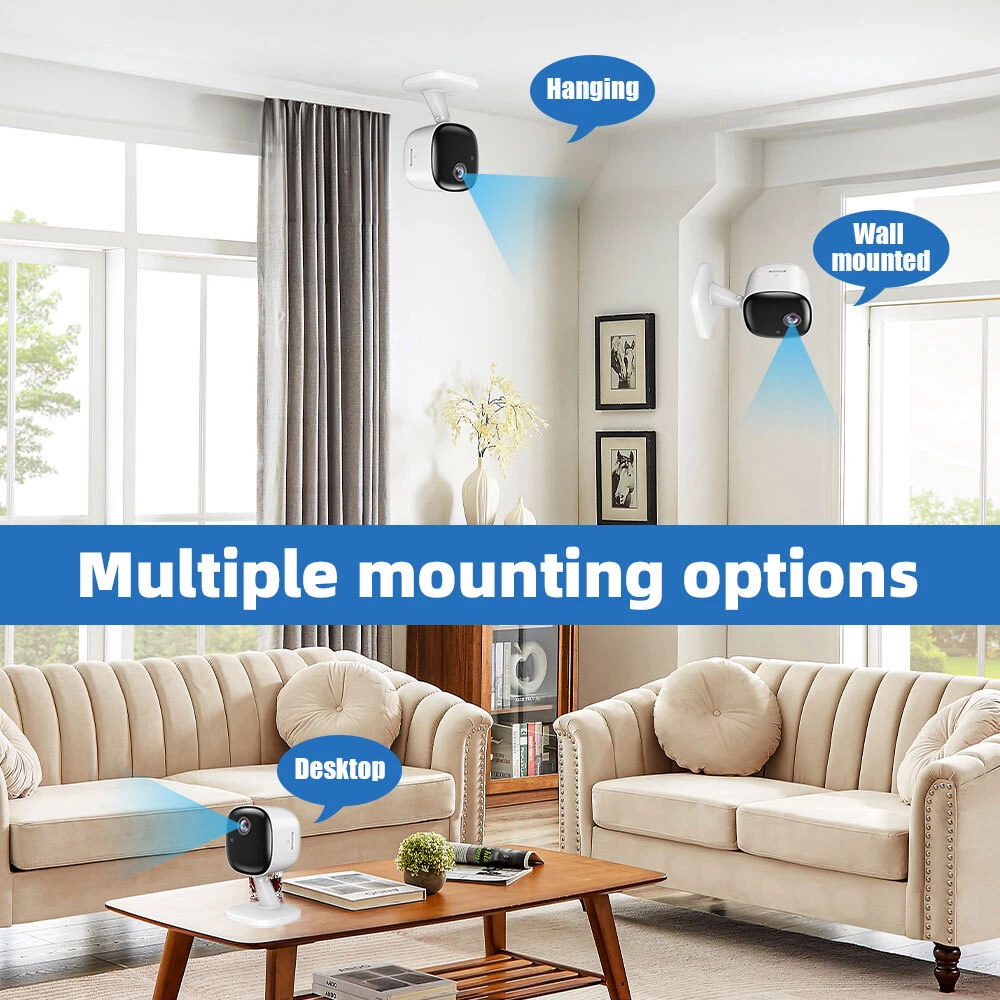 Features • 1080P Full HD video quality, live streaming and viewing recordings • Advanced motion detection distance up to 5 meters. • Wide viewing angle, see more at every moment • WiFi wireless connection • Support MicroSD card local storage, up to 256GB • Support two-way audio between mobile phone and camera • The camera can rotate 360° horizontally freely • Support 7X24H video recording, never miss every moment • Provide free APP, support remote viewing on iOS or Android • Cloud storage for motion detection recording (optional) • Powered by universal power adapter (Type-C port, DC5V/1.5A) • Secure AWS and free local storage help】 * Our indoor cameras use the most advanced military-grade encryption technology to ensure that your data is protected on our secure cloud servers. * Rest assured that even in the rare event of theft, your privacy will remain intact. * In addition, this home security camera also provides free local storage support via Micro SD card (up to 256G, not included), allowing you to store footage conveniently and safely.