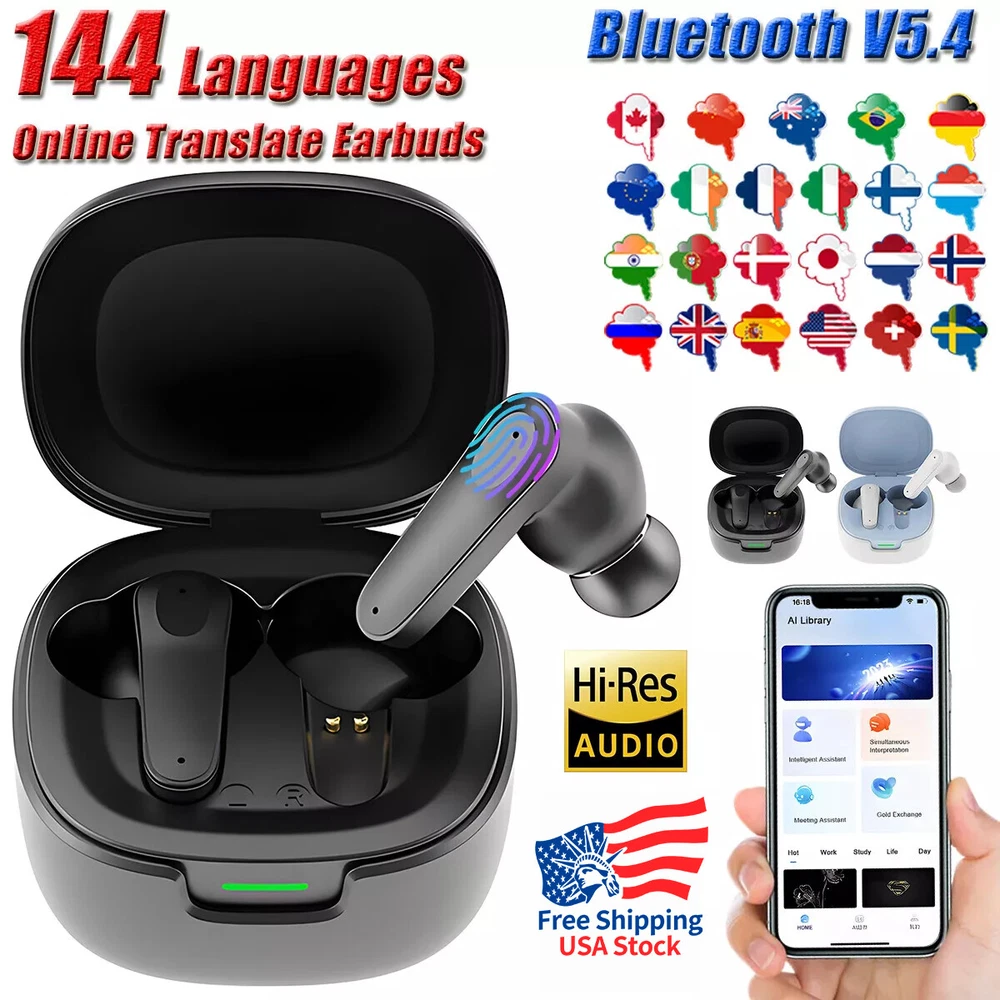New 144 Languages Smart Translate Bluetooth Earbuds Real Time Voice Translator