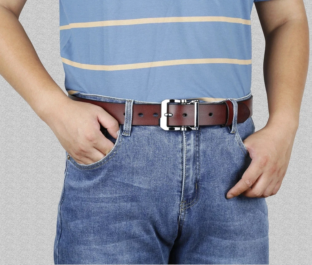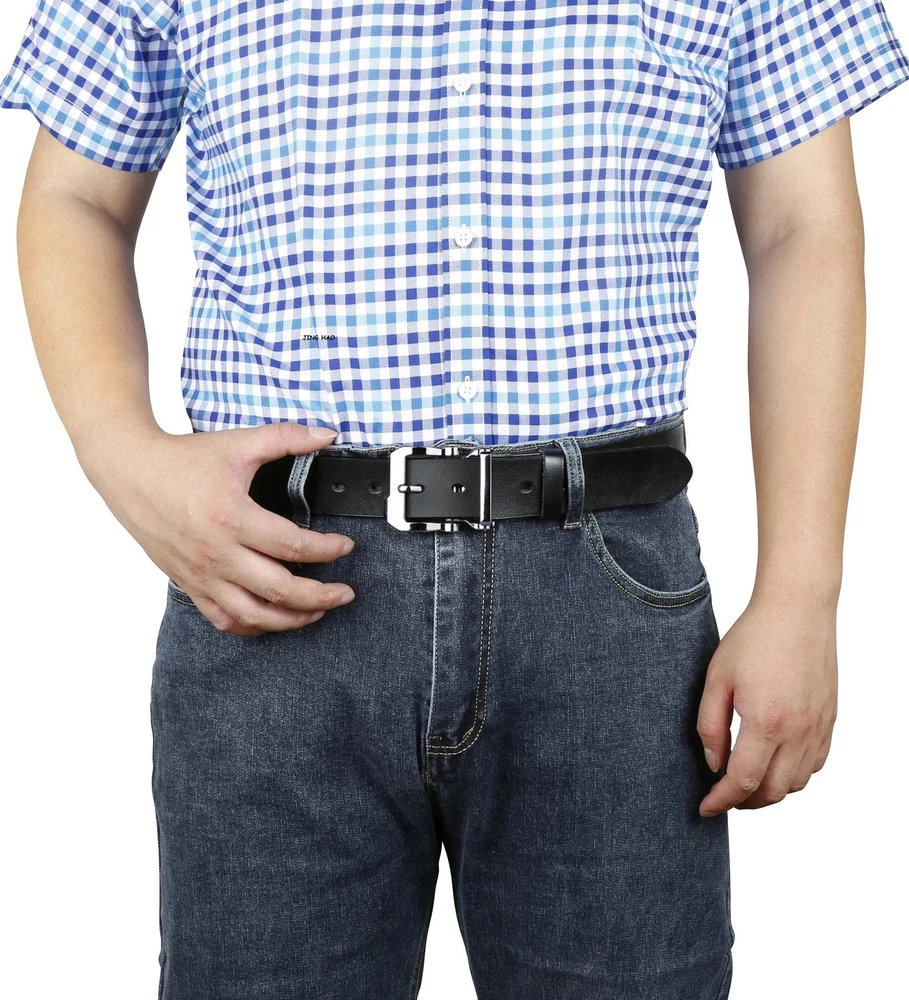 The Belt's Wide--1.5'' Premium Quality--100% Full Grain Leather High-quality alloy buckle--SCRATCH RESISTANT which made to last. Our genuine leather belt is highly constructed for a longer endurance and amazing performance. ORDER ONE SIZE LARGER THAN YOUR WAIST/PANTS SIZE .For example, if your waist/pants size is 32 inch, select size 32/34. If your waist/pants size is 34 inch, select size 36/38. Perfect for All -So comfortable it will become your everyday belt! Perfect for use every day as a work belt,a casual belt,a dress belt.This belt can literally do it all. If you are tired of the belts that always fall apart give us a try.Treat yourself to the belt that can replace ALL of your old belts. Ideal Gift for Dear Ones--It’s great for Christmas, birthday, anniversary, Father’s Day.