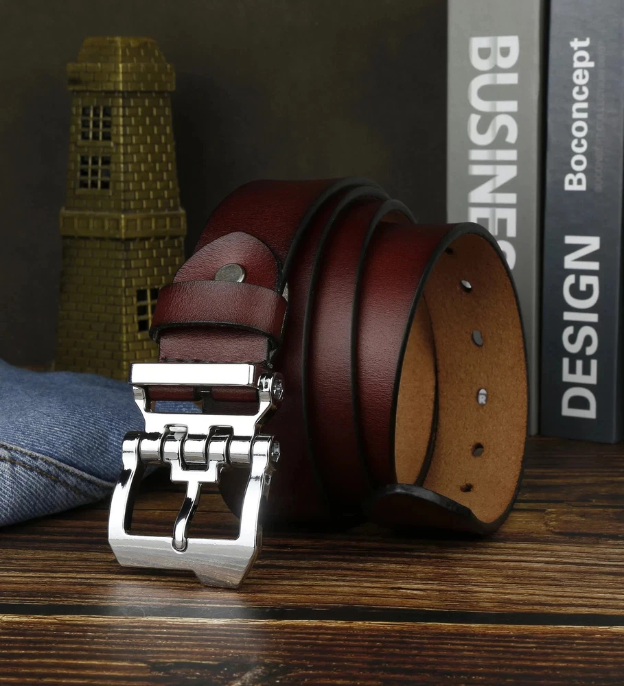 New Genuine Leather Mens Ratchet Belt Belts For Men Adjustable Automatic Buckle