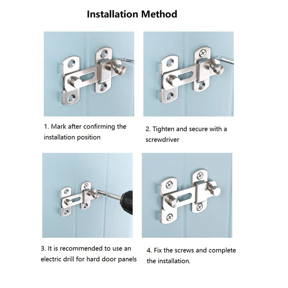 You may also like 8 IN 1 Metal Craft Chinese Ring Puzzle IQ Brain Teaser Kid Adult Educational Toy 10.99 USD 4Pack Durable Fuel Line Tube Hose For Husqvarna 61 66 162 181 266 268 272 281 9.99 USD Pneumatic Foot Pedal Valve FV-320 Momentary 3 Way 2 Position 1/4"PT Threaded 23.99 USD 5V 4-Pin Sunglasses USB Charger Charging Cable For Bose Frames Alto/Rondo/Tenor 11.99 USD 10x Hall Effect Joystick 3D Analog Stick Module For PS5 Dualsense Controller 17.59 USD 3.69 USD 10Pack Plastic+HSS 360° Deburring Tool Steel HSS Rotary Deburr Trimming Handle 10.69 USD Product Description Door Lock 180/90 Degree Barn Bolt Cast Stainless Steel Hook Latch Window Cabinet Locks With Screws Right Angle Sliding Gate Lock Feature: 1. Durable and sturdy cast metal construction ensures long-lasting use 2. Provides added security for your doors and gates with a reliable latch lock 3. Unique texture and design adds a decorative touch to your home or office 4. Suitable for use on toilet doors, sliding gates, and barn doors 5. Easy to install and use with a right angle sliding mechanism Specification: Material: Stainless steel Color: As shown Options: 180 Degree, 90 Degree(optional) Package includes: 1 * Sliding door lock 4 * screw Notice: Due to different computer resolutions, there may be some color distortion Due to different hand measurements, there may be a little error About Us Payment Shipping Returns Contact Us Welcome to our store! Our aim is to offer our clients items with high quality and fast delivery, also our price will be reasonable. We supply many products including video game, health & beauty, phone accessories, computers accessories, camera & camcorder,car accessories, games, toys & hobbies, jewelry, antique & craftwork. Excellent customer service and a reliable credit standing is our tenet. We accept all verified payments from ebay. Orders will be shipped after receiving cleared payment. We ship most of our orders within 24 hours, and may up to 48 hours. If you want faster shipping way. Please contact us before making payment. Sometimes due to problems with our transportation company system, your shipping information may be delayed to update. We recommend that you try again after 3-4 days. If you still haven't checked the shipping information, you can contact us by ebay message. Always believe we can figure things out with communication, if it comes to return, the pacakge must be intact and the same as you receive. If you have any questions, please feel free to email our service specialists 24 Hours a Day, 7 Days a Week. We will reply you ASAP. Return/refund is accepted within 30 days after the buyer receives the item. NO exchange will be accepted after 30 days from the date when the item is received. Please contact us first before returning your product!!! If you have any questions, our Customer Service staffs welcome you to email us. We strive to answer all questions and resolve any problems as quickly as possible. We care about our valued customers, and will always try to help you. So if you have any problems, You can contact us 7*24, we will reply at the first time. About Us Welcome to our store! Our aim is to offer our clients items with high quality and fast delivery, also our price will be reasonable. We supply many products including video game, health & beauty, phone accessories, computers accessories, camera & camcorder,car accessories, games, toys & hobbies, jewelry, antique & craftwork. Excellent customer service and a reliable credit standing is our tenet. Payment We accept all verified payments from ebay. Orders will be shipped after receiving cleared payment. Shipping We ship most of our orders within 24 hours, and may up to 48 hours. If you want faster shipping way. Please contact us before making payment. Sometimes due to problems with our transportation company system, your shipping information may be delayed to update. We recommend that you try again after 3-4 days. If you still haven't checked the shipping information, you can contact us by ebay message. Returns Always believe we can figure things out with communication, if it comes to return, the pacakge must be intact and the same as you receive. If you have any questions, please feel free to email our service specialists 24 Hours a Day, 7 Days a Week. We will reply you ASAP. Return/refund is accepted within 30 days after the buyer receives the item. NO exchange will be accepted after 30 days from the date when the item is received. Please contact us first before returning your product!!! Contact Us If you have any questions, our Customer Service staffs welcome you to email us. We strive to answer all questions and resolve any problems as quickly as possible. We care about our valued customers, and will always try to help you. So if you have any problems, You can contact us 7*24, we will reply at the first time. Oil Drive Pump Filter Pipe Kit For CHINESE CHAINSAW 4500 5800 45CC 52CC 58CC 10.99 USD Flex Edge Beater Paddle For Kitchenaid Bowl-lift Stand Mixer 6 Quart Accessories 19.99 USD 6pcs 1/18 Plastic Special Force Action Figures 10cm Army Men Soldier Playset 10.99 USD Mini Digital LC100-A LCD High Precision Inductance Capacitance L/C Meter Tester 24.99 USD 1:144 Unassembled US C-130 Hercules Transport Aircraft 4D Military Plane Model 19.99 USD 1/72 WW2 P-51B Mustang Fighter Alloy Aircraft Model Military Plane Collection 33.99 USD DEGREE ELECTRIC ENGINE COOLING FAN THERMOSTAT SWITCH Universal 200 TO 185 H 16.99 USD New Chain Adjuster Tensioner For Fits Stihl 017 018 MS170 MS180 1120 664 1500 12.29 USD 5pcs 6cm Metal Cutter Drill Bits Rotary Bits Rasp For Steel Grinding Carving E 12.69 USD 1/1250 HMT OLYMPIC Ocean Boat Diecast Cruise Ship Model Craft Souvenir Scene 33.99 USD 6x Belt Clip Hook Screw Kit For Dewalt 20V Drill Impact Driver Flashlight Tools 12.99 USD 1/350 1942 World War II Germany U181 Navy Submarine Model Military Collection 39.99 USD 5mm Wrench T-Handle Hex Allen Key Screws Screwdriver Driver Tools 10.69 USD 
