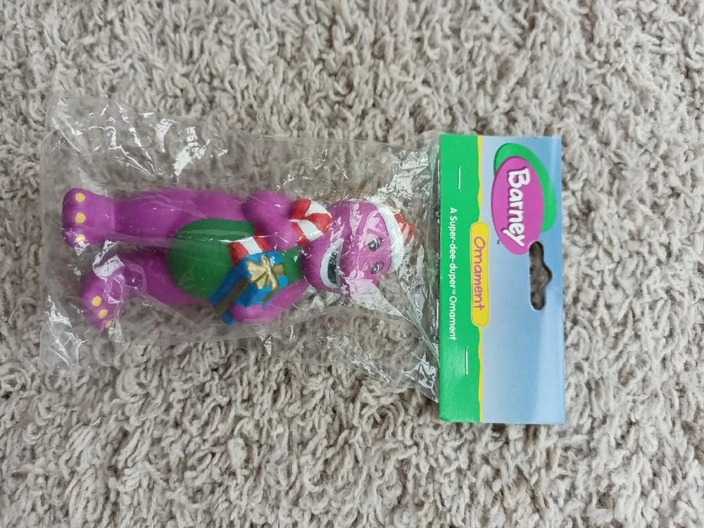 New Barney 1999 Purple Dinosaur Kurt Adler Ornament Ceramic Christmas Santa NRFB New Barney 1999 Purple Dinosaur Kurt Adler Ornament Ceramic Christmas Santa NRFB Click images to enlarge Description You are looking at a New Kurt Adler Barney the Purple Dinosaur Christmas Ornament that is NRFP (never opened or removed etc..). Barney is wearing a Santa hat. He's holding a gift and candy cane. He's breakable (most likely ceramic). From 1999. Part of my aunt's estate and Barney collection. She has a few of these. Super Dee Duper Ornament! This comes from my smoke free and smell free home. He will come securely shipped. I use Click N' Ship so your item goes out quickly. Shipping HOW I ship: USPS First Class or Priority Mail with DELIVERY CONFIRMATION . Priority Mail includes INSURANCE and Delivery Confirmation . Combined Shipping: I LOVE to combine shipping to save you money. I adjust it based on the weight of all of the items together, size of the box (new thing with USPS), and distance. Please contact me for a quote on combined shipping. Speed of Shipping: I SHIP VERY FAST with Click N' Ship. You pay, I print, and my postal carrier picks the item up at my front door. You're not waiting for me to drive to the Post Office, wait in line etc.... IMPORTANT: Once the Post Office has your package, I have no control over what they do or how long it takes them to get it to your door. Tracking is uploaded and you can follow your item daily online on your eBay purchases page. Allow enough time for your item to get to you (especially if it's gift, holiday or a birthday party item). FYI "guaranteed" arrival times by the post office on their website and on eBay are only "estimates" so again, plan accordingly. The ONLY guaranteed speed for USPS is EXPEDITED OVERNIGHT DELIVERY. If you're LOCAL, I appreciate you wanting to save time and me money on shipping. However, most times I cannot meet someone to pick up an item so please accept the shipping terms as going through the Post Office. I do make exceptions on LOCAL if you're near me, or I know you, or the item is LARGE and/or FRAGILE. Terms of Sale I strive to make my buyers happy and offer a return policy on almost all of my auctions with a few exceptions. Please know your sizing ! I give dimensions when selling used clothing to avoid any confusion. Honesty is greatly appreciated. Returns: Items must be returned in the condition in which it was sent. Example: NWT clothing must have the tags on it , cannot be worn or tampered with. I'm the most flexible and easy to work with Ebayer. If there is an issue (which I don't expect there to be) please email me first. About Us I pride myself on being accurate and offering a detail-oriented auction/sale with plenty of pictures. Ebay should be a fun and happy experience for both buyers and sellers. Contact Us Please feel free to contact me through Ebay with any questions. Pictures sell! Auctiva offers Free Image Hosting and Editing. 300+ Listing Templates! Auctiva gets you noticed! The complete eBay Selling Solution. Track Page Views With Auctiva's Counter