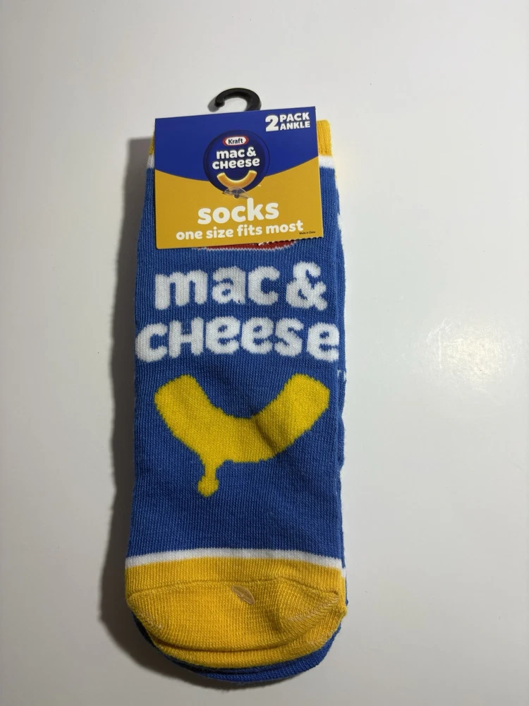 Elevate your sock game with these new 2 pairs of mac & cheese socks. The socks feature a solid pattern and a novelty theme. Perfect for casual occasions, these socks are designed for unisex adults and come in one size that fits most. Made with a blend of polyester and spandex, these socks are lightweight and breathable, making them suitable for all seasons. The low cut sock length with a full toe style provides comfort and support for walking. These socks are perfect for anyone looking for a fun and stylish addition to their wardrobe.
