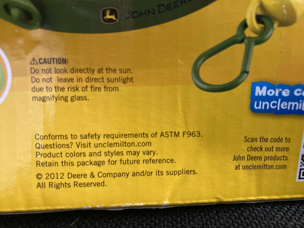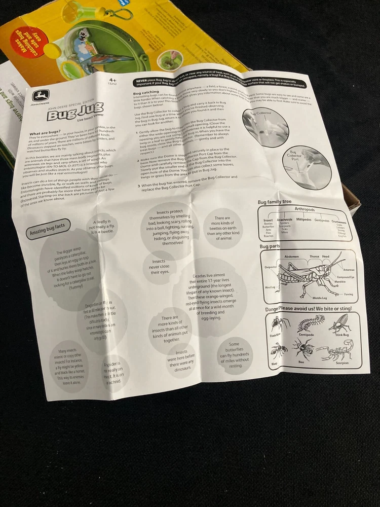 Discover the fascinating world of bugs with the 2012 John Deere Special Edition BUG JUG Live Insect Viewer by Uncle Milton. This unique toy allows kids aged 4 and above to explore the wonders of nature and learn about different insects and their habitats. The device features a live insect viewer that provides a clear and detailed view of tiny creatures, making it an excellent educational tool for young children. With its sturdy construction and high-quality optics, the BUG JUG Live Insect Viewer is sure to provide hours of fun and educational playtime. Whether your child is a budding entomologist or simply curious about the world of bugs, this toy is the perfect addition to their collection. *Box is slightly dinged but the item is in mint condition