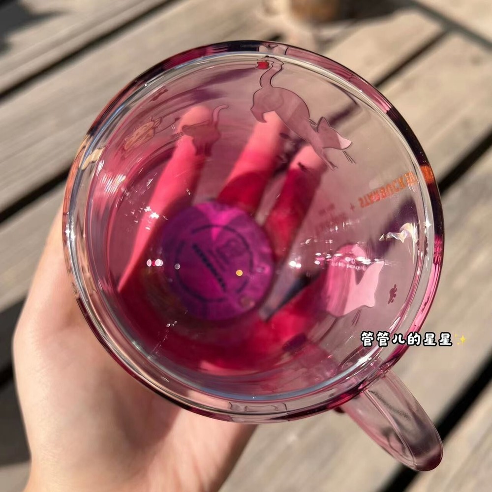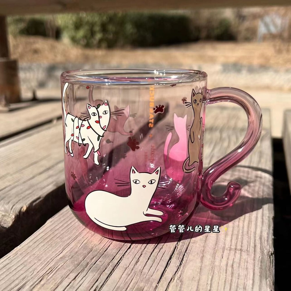 New 2023 China Starbucks X Katespade Cat Style 9oz Double Glass Mug Material:glass Capacity:275ml(9oz)