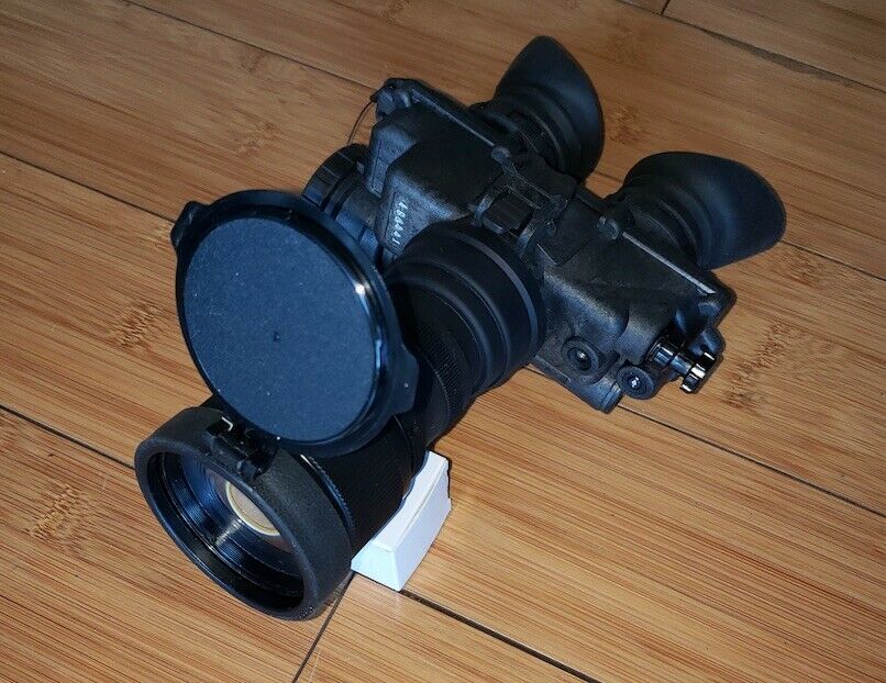 New 3X Focusing High Performance F1.2 Mil Spec Night Vision Biocular without image intensifier tube, based on AN/PVS-7B Housing, with Flip-Up Lens Cover, Demist Shields for Eyepieces, Soft Canvas Carry Case, and a Set of Lens Cleaning Tissues. The high performance 75 mm F1.2 Mil Spec objective lens has wide range focus adjustment by reciprocal movement, with the objective optics and lens cover moving forward and back without rotation. R eady to accept 18mm Gen II or Gen III Image Intensifier Tubes. All components are manufactured, assembled, and tested in accordance with all US Military specifications. Comes with a choice of one canvas carry case out of the following three options: standard issue night vision OD green, or black with "ITT Night Vision" in white letters sewn on it, or black with the "ITT Night Vision" letters removed from it (traces from the letters remain somewhat visible). Please send a message after placing the order with your choice of the canvas carry case. Please note that the objective lens has a C-mount and the objective lens adapter screwed on to PVS-7B housing accepts any C-mount lenses. Thanks for choosing to buy this item. Before you do, please read the following important information: Important! This item is regulated and restricted for export by Part 121 of the International Traffic in Arms Regulations (ITAR). By purchasing this item, you confirm that you're buying this item for your own use, that you're a United States citizen or permanent resident of the United States, and that you will not export this item outside of the United States without first obtaining an export license from the Department of State for that purpose.