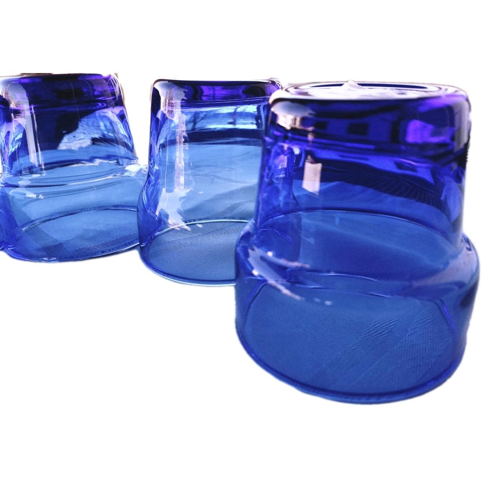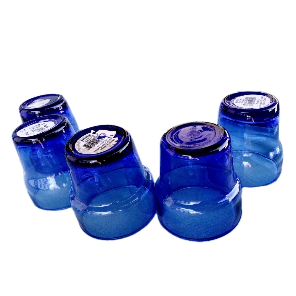 Elevate your home decor with the 5 elegant Anchor Hocking cobalt blue glass votive candle holders. These small, flower pot-shaped holders are a blend of practicality and mid-century modernism, ideal for all occasions. The smooth finish and rich blue hue add a touch of sophistication to any room. Crafted in the United States, Ohio between 2000 and 2009, each piece stands 2.5 inches tall, making them perfect for showcasing tea lights or small candles. This set includes five decorative holders, ensuring your space is adorned with a cohesive and inviting glow.