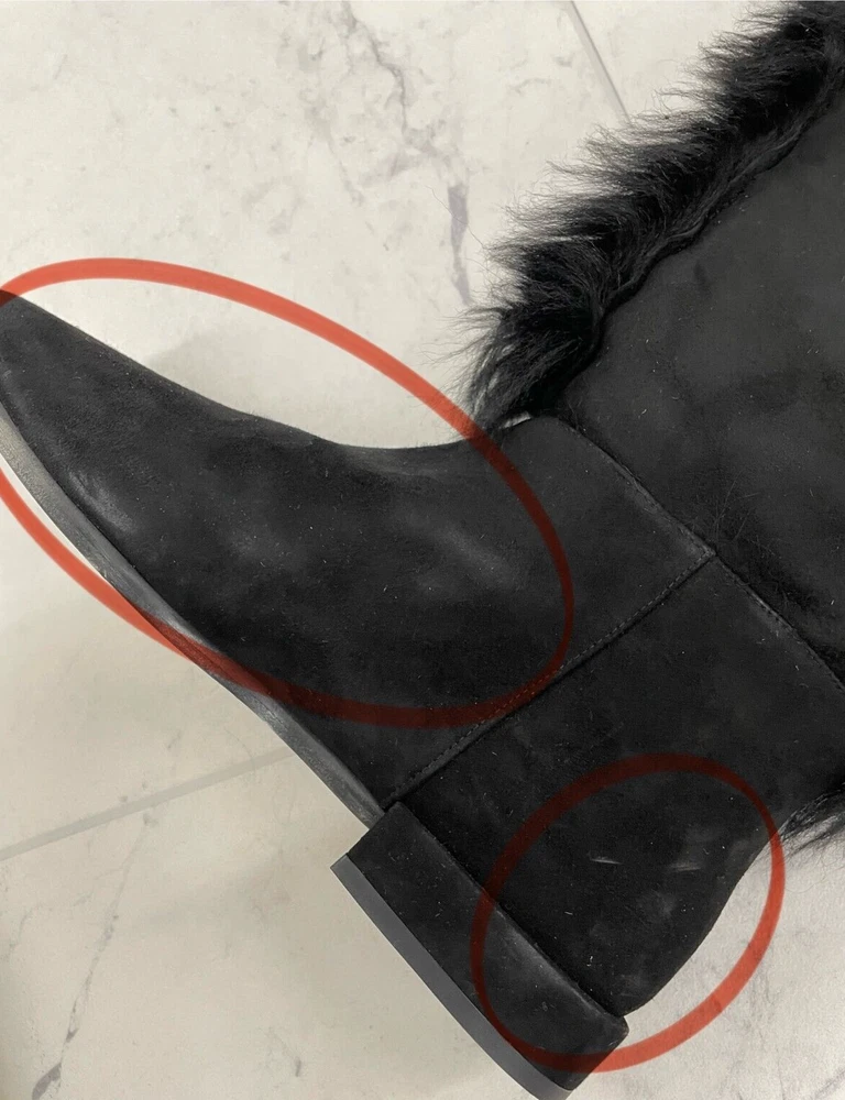 Brand: FRAME Size:37 (US 7) Color: Black Condition: **New without the box * ** has product sicker** BOOT HAS MARKS ( MARKS ARE NATURE OF THE LEATHER SUEDE) **Please review pictures** Measurements are approx. : Circumference / Opening: 20" Shaft Height: 27" (uncuffed) Width: 3" Sole: 10.3" Heel: 1'' PLEASE FEEL FREE TO ASK QUESTIONS BEFORE PURCHASE Thank you!