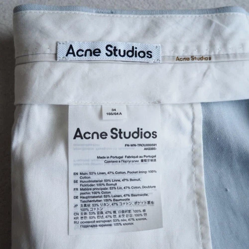 New Acne Studios linen blend trousers with high waist and tucks Description When purchasing, please inquire about product details such as size. Payment Please pay within 5 days after auction is finished. Term of Sale Money back guarantee within 14 days if returned by customer. We offer 14 days money back guarantee for defective products. However the buyer must pay money for returning it back to us. About Us A specialty shop offering a wide variety of carefully selected Japanese brand items. Unless marked "used" all of our inventory is brand new, so you can feel confident about your purchase. Even if you think to yourself, "But the item I want is only available in Japan.", make sure to consult with us before giving up hope. We will look for and suggest the best products on your behalf. International Buyers - Please Note Import duties, taxes and charges are not included in the item price or shipping charges. These charges are the buyer's responsibility. Please check with your country's customs office to determine what these additional costs will be prior to bidding/buying. These charges are normally collected by the delivering freight (shipping) company or when you pick the item up - do not confuse them for additional shipping charges.