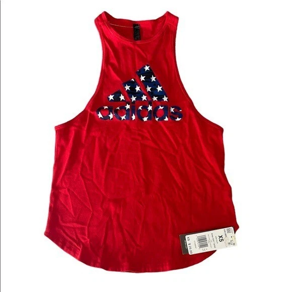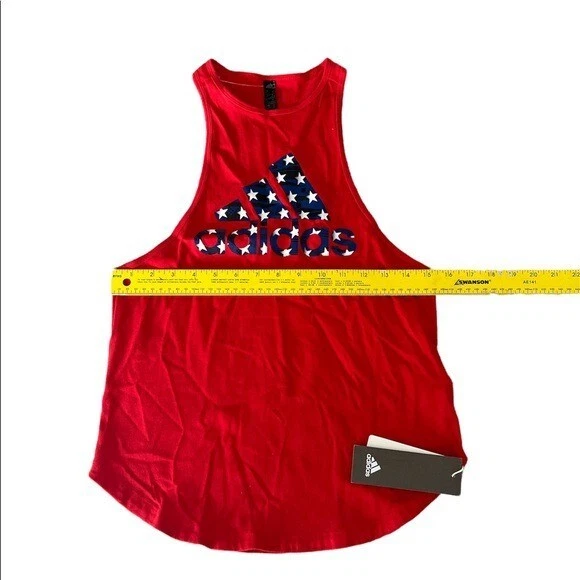 Color: Red Vintage: No Size Type: Regular Department: Women Brand: adidas Strap Type: Racerback Type: Tank Occasion: Activewear Fit: Athletic Theme: Flag Style: Athletic Size: XS